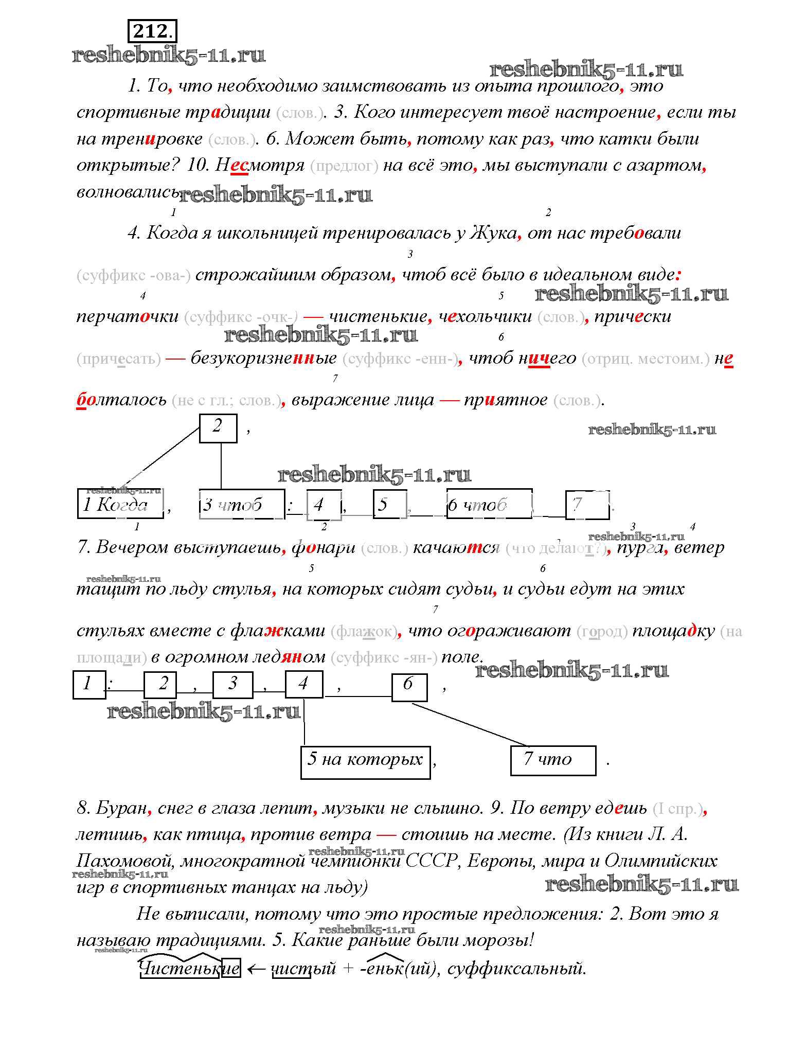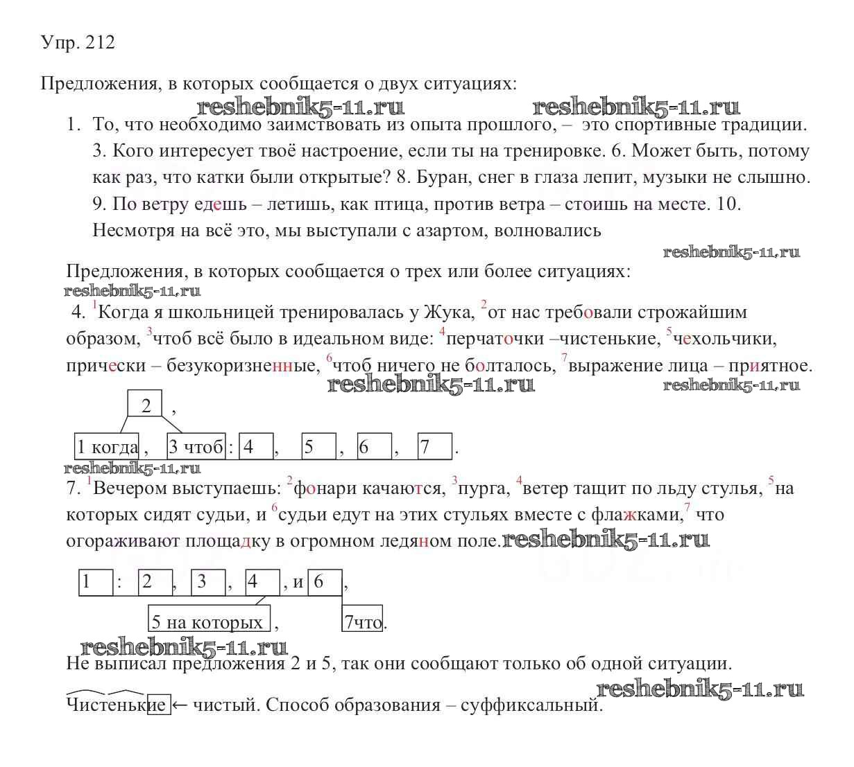 Готовая домашняя работа с ответами по Русскому языку за 9 класс Тростенцова, Ладыженская, Дейкина, Александрова Учебник Просвещение 2014 ФГОС - Упражнения 212