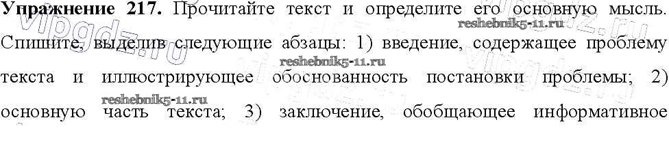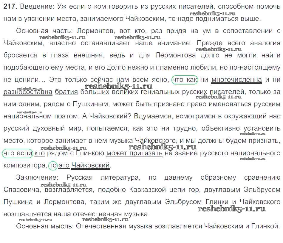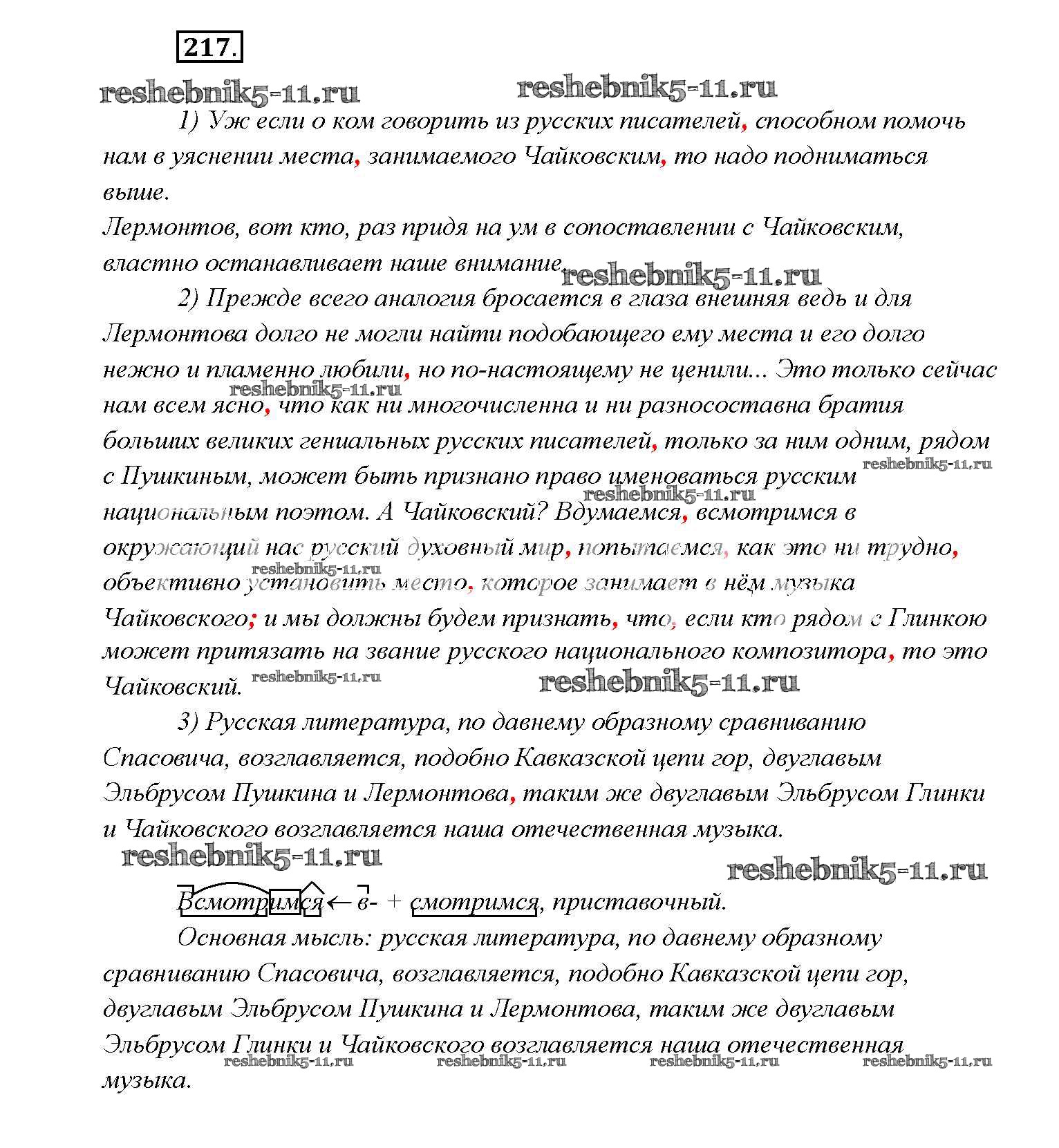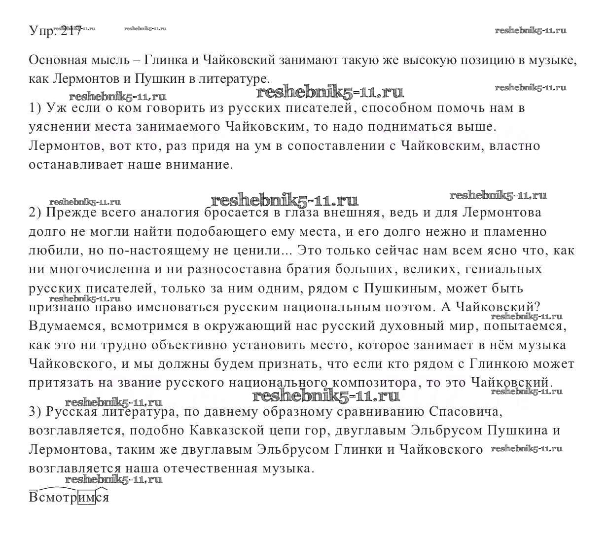 Готовая домашняя работа с ответами по Русскому языку за 9 класс Тростенцова, Ладыженская, Дейкина, Александрова Учебник Просвещение 2014 ФГОС - Упражнения 217