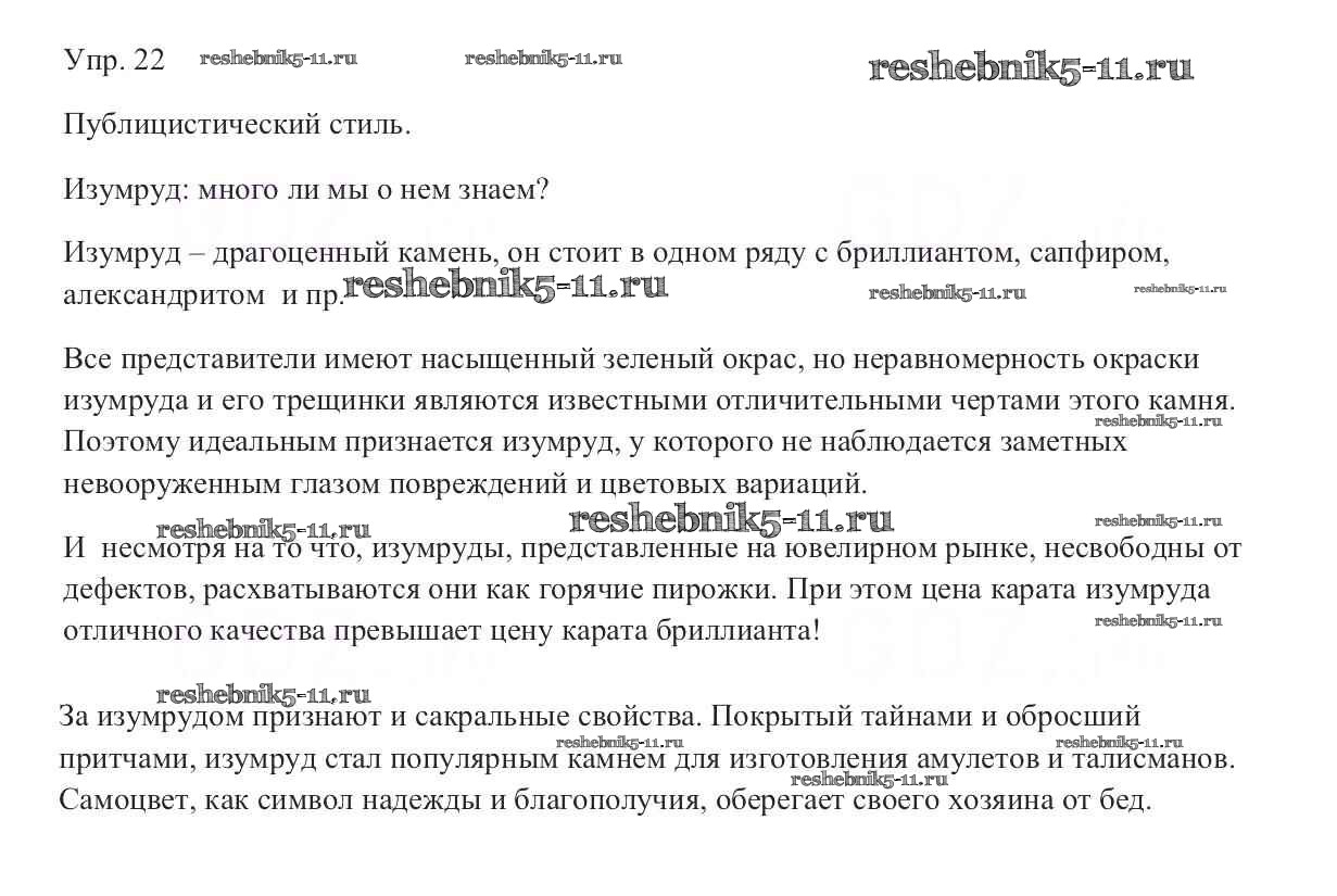 Готовая домашняя работа с ответами по Русскому языку за 9 класс Тростенцова, Ладыженская, Дейкина, Александрова Учебник Просвещение 2014 ФГОС - Упражнения 22