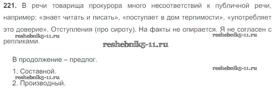 Готовая домашняя работа с ответами по Русскому языку за 9 класс Тростенцова, Ладыженская, Дейкина, Александрова Учебник Просвещение 2014 ФГОС - Упражнения 221