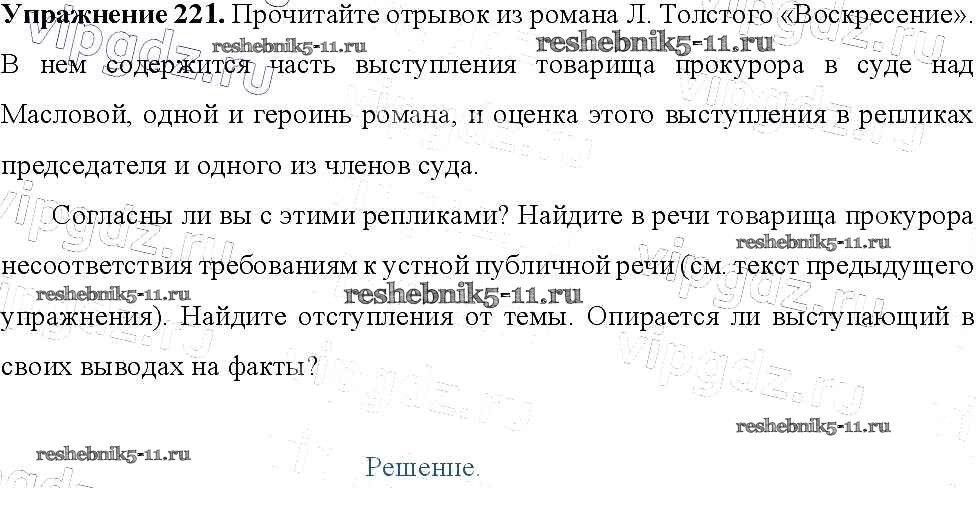 Русский язык за 9 класс Тростенцова Учебник Просвещение упражнение 221