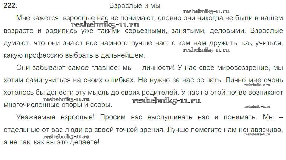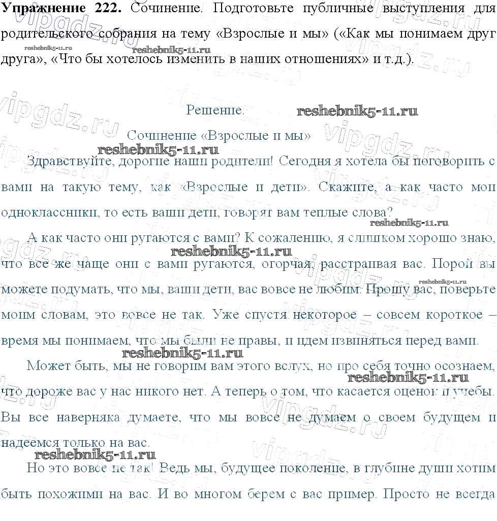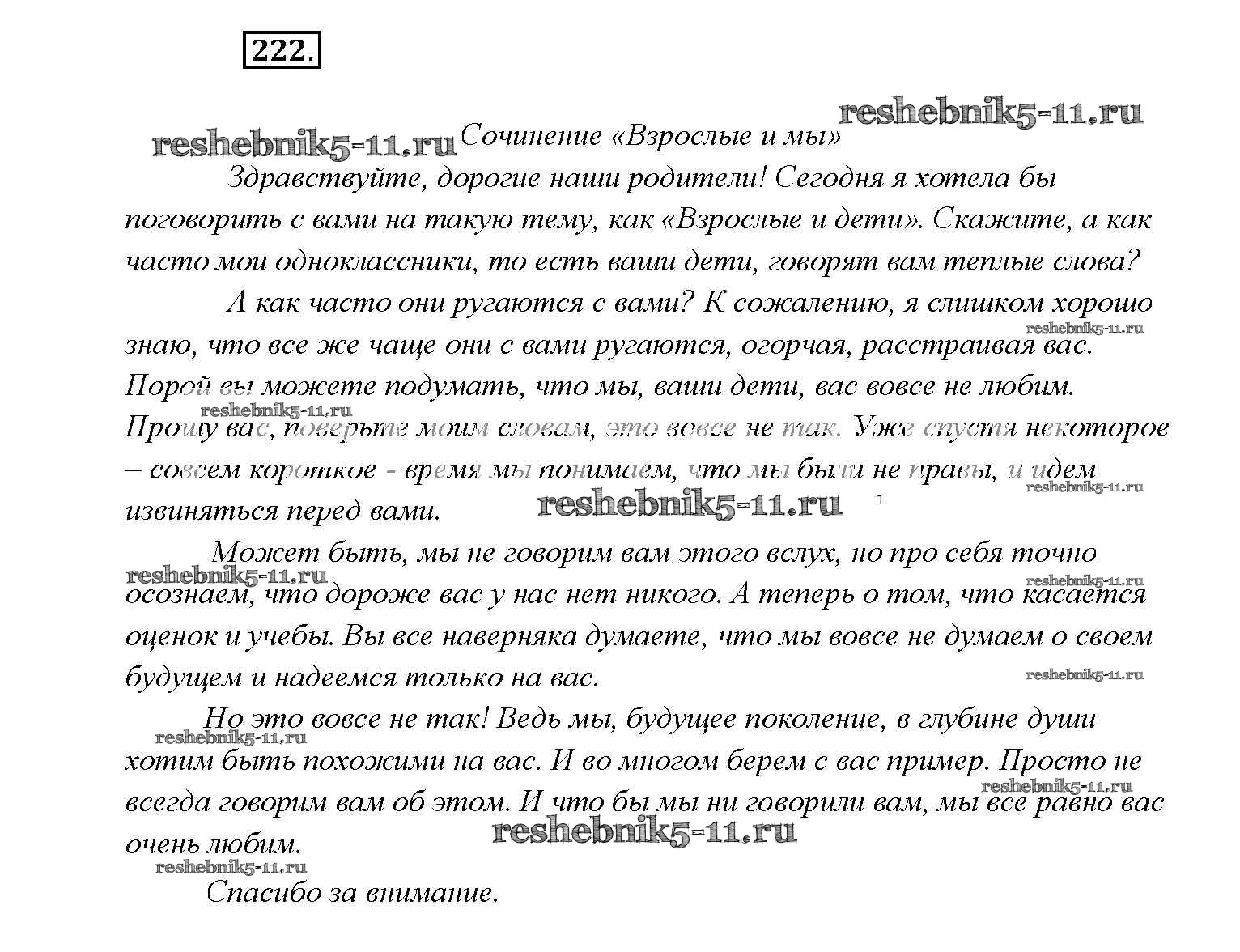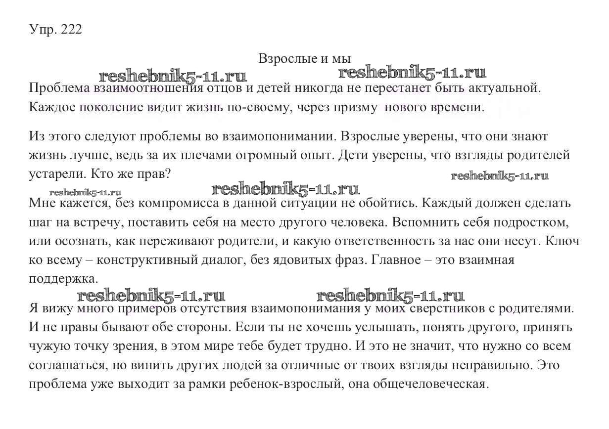 Готовая домашняя работа с ответами по Русскому языку за 9 класс Тростенцова, Ладыженская, Дейкина, Александрова Учебник Просвещение 2014 ФГОС - Упражнения 222