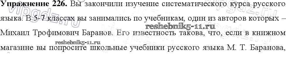 Русский язык за 9 класс Тростенцова Учебник Просвещение упражнение 226