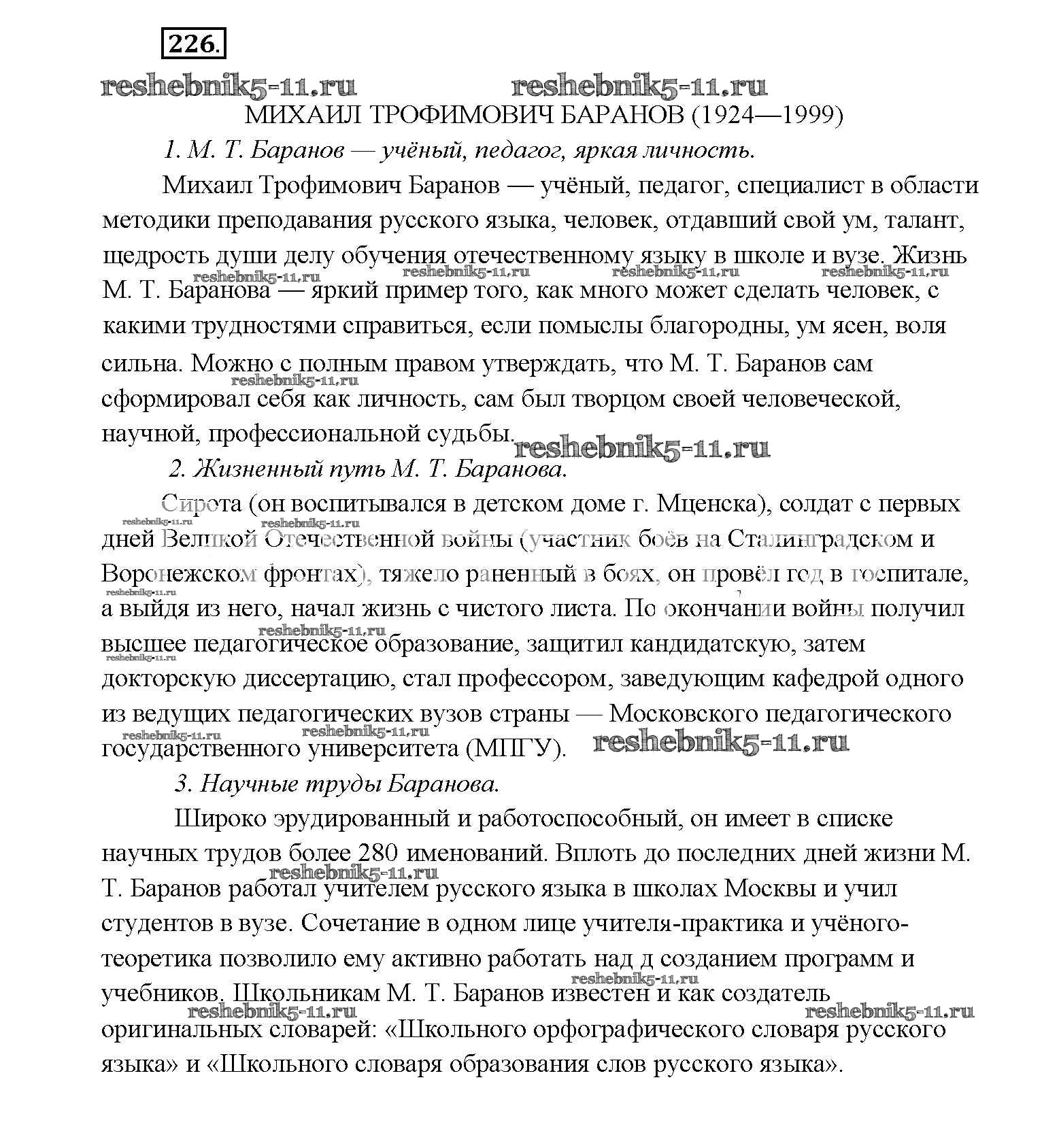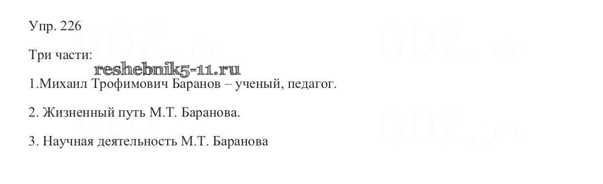 Готовая домашняя работа с ответами по Русскому языку за 9 класс Тростенцова, Ладыженская, Дейкина, Александрова Учебник Просвещение 2014 ФГОС - Упражнения 226