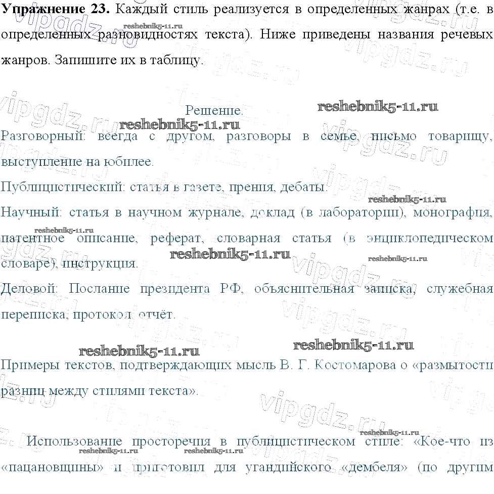 Готовая домашняя работа с ответами по Русскому языку за 9 класс Тростенцова, Ладыженская, Дейкина, Александрова Учебник Просвещение 2014 ФГОС - Упражнения 23
