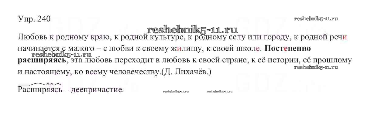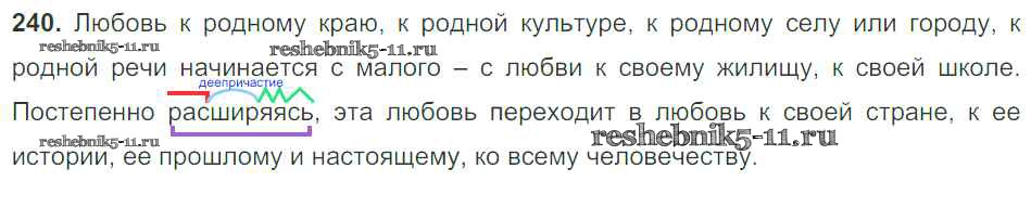 Готовая домашняя работа с ответами по Русскому языку за 9 класс Тростенцова, Ладыженская, Дейкина, Александрова Учебник Просвещение 2014 ФГОС - Упражнения 240