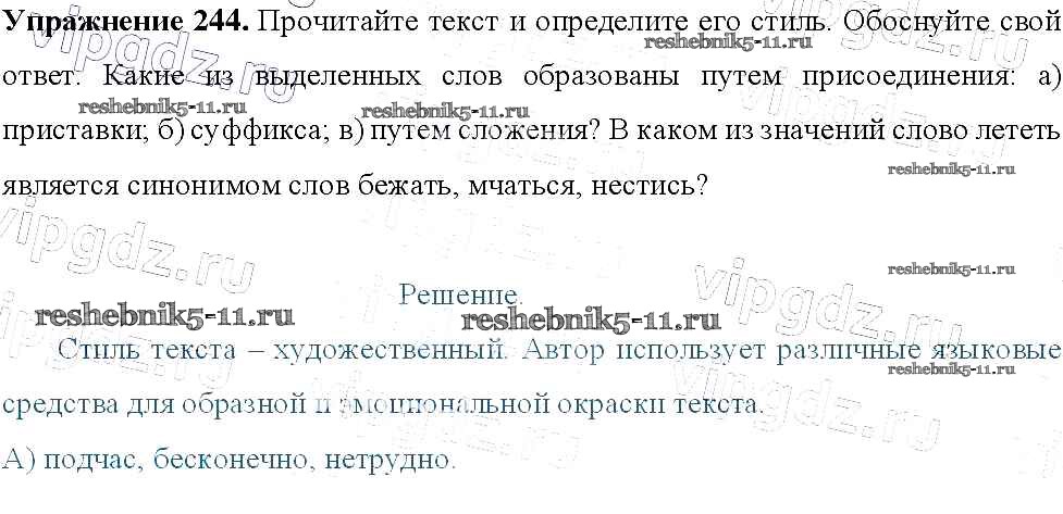 Готовая домашняя работа с ответами по Русскому языку за 9 класс Тростенцова, Ладыженская, Дейкина, Александрова Учебник Просвещение 2014 ФГОС - Упражнения 244
