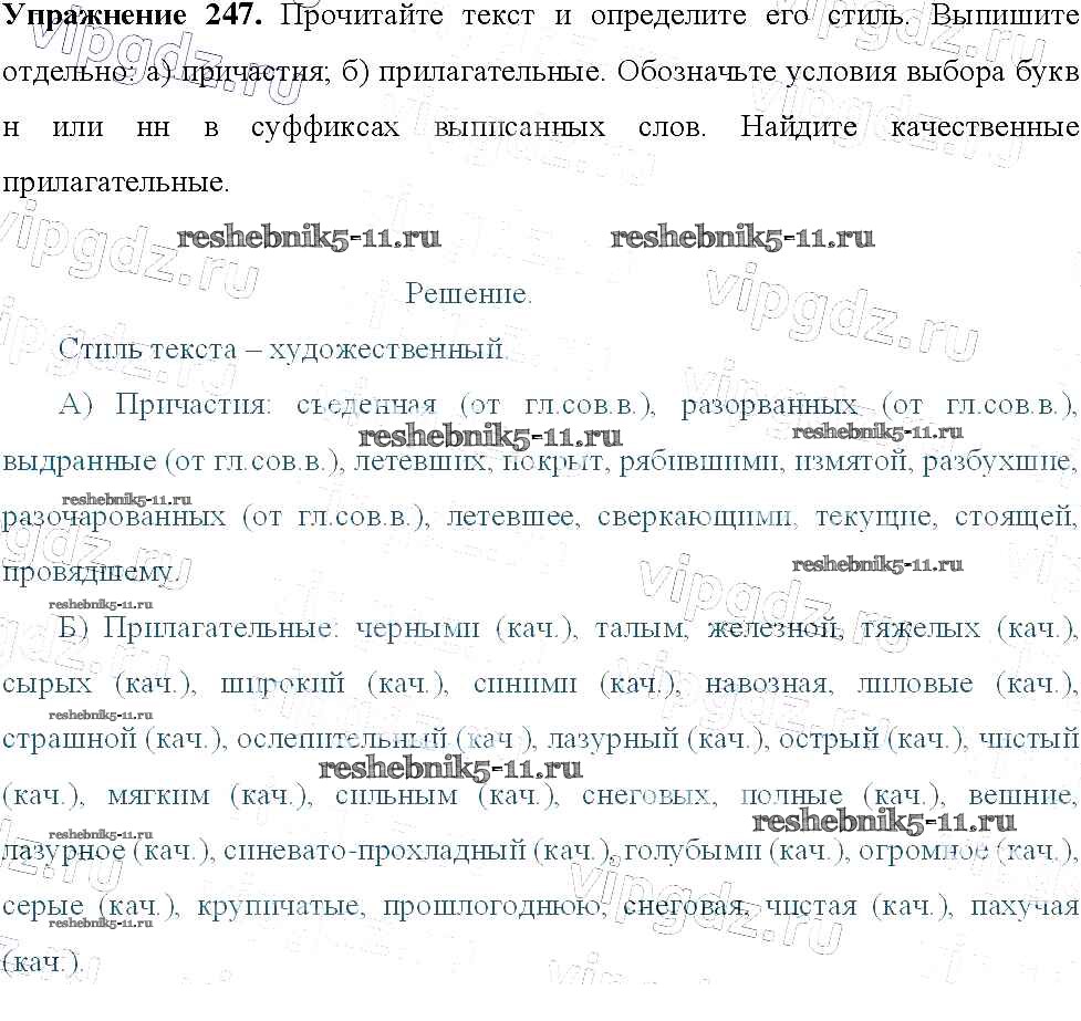 Готовая домашняя работа с ответами по Русскому языку за 9 класс Тростенцова, Ладыженская, Дейкина, Александрова Учебник Просвещение 2014 ФГОС - Упражнения 247