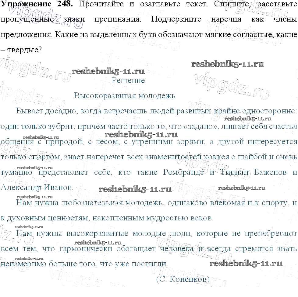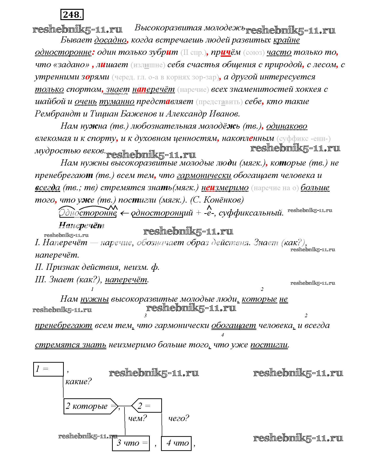 Готовая домашняя работа с ответами по Русскому языку за 9 класс Тростенцова, Ладыженская, Дейкина, Александрова Учебник Просвещение 2014 ФГОС - Упражнения 248