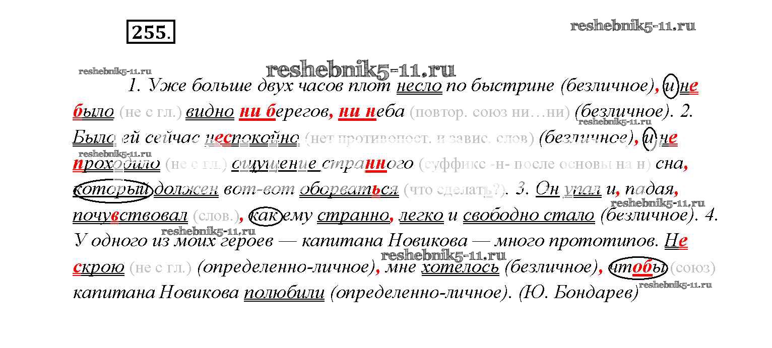Готовая домашняя работа с ответами по Русскому языку за 9 класс Тростенцова, Ладыженская, Дейкина, Александрова Учебник Просвещение 2014 ФГОС - Упражнения 255
