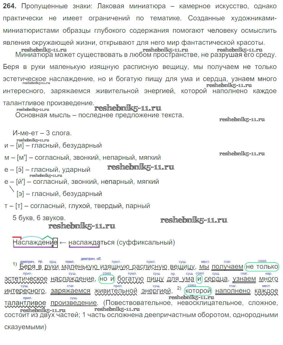 Готовая домашняя работа с ответами по Русскому языку за 9 класс Тростенцова, Ладыженская, Дейкина, Александрова Учебник Просвещение 2014 ФГОС - Упражнения 264