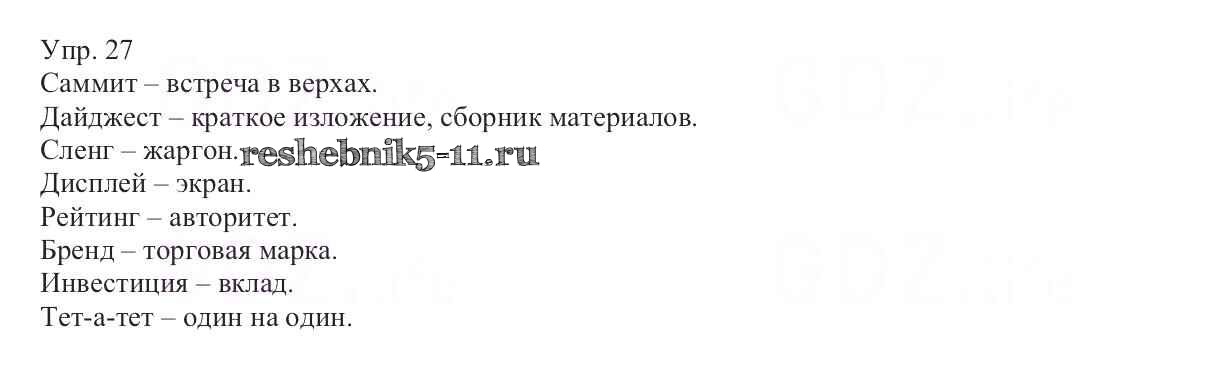 Готовая домашняя работа с ответами по Русскому языку за 9 класс Тростенцова, Ладыженская, Дейкина, Александрова Учебник Просвещение 2014 ФГОС - Упражнения 27