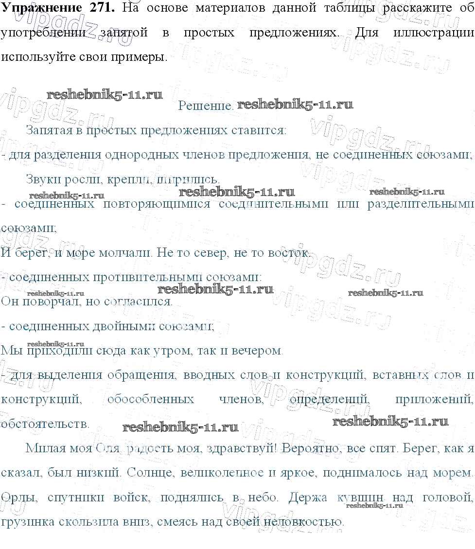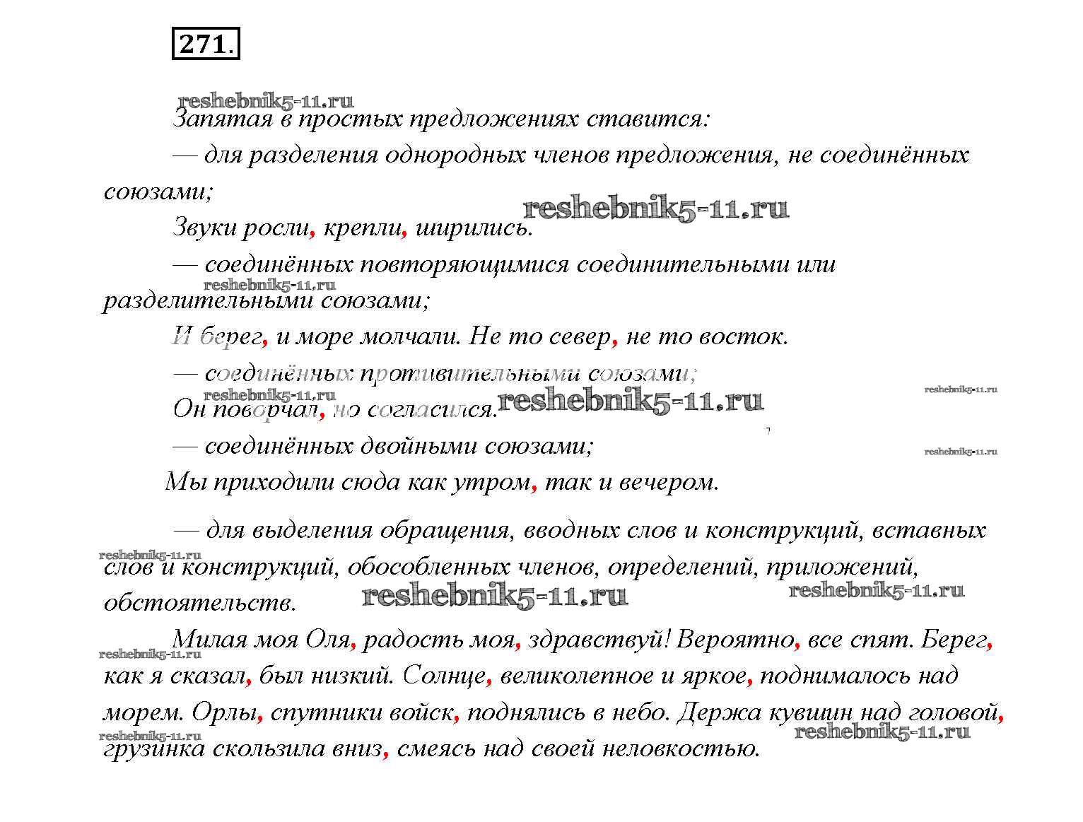 Готовая домашняя работа с ответами по Русскому языку за 9 класс Тростенцова, Ладыженская, Дейкина, Александрова Учебник Просвещение 2014 ФГОС - Упражнения 271