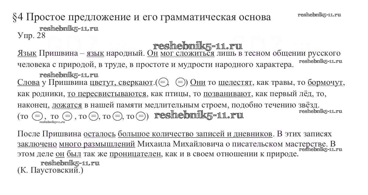 Готовая домашняя работа с ответами по Русскому языку за 9 класс Тростенцова, Ладыженская, Дейкина, Александрова Учебник Просвещение 2014 ФГОС - Упражнения 28