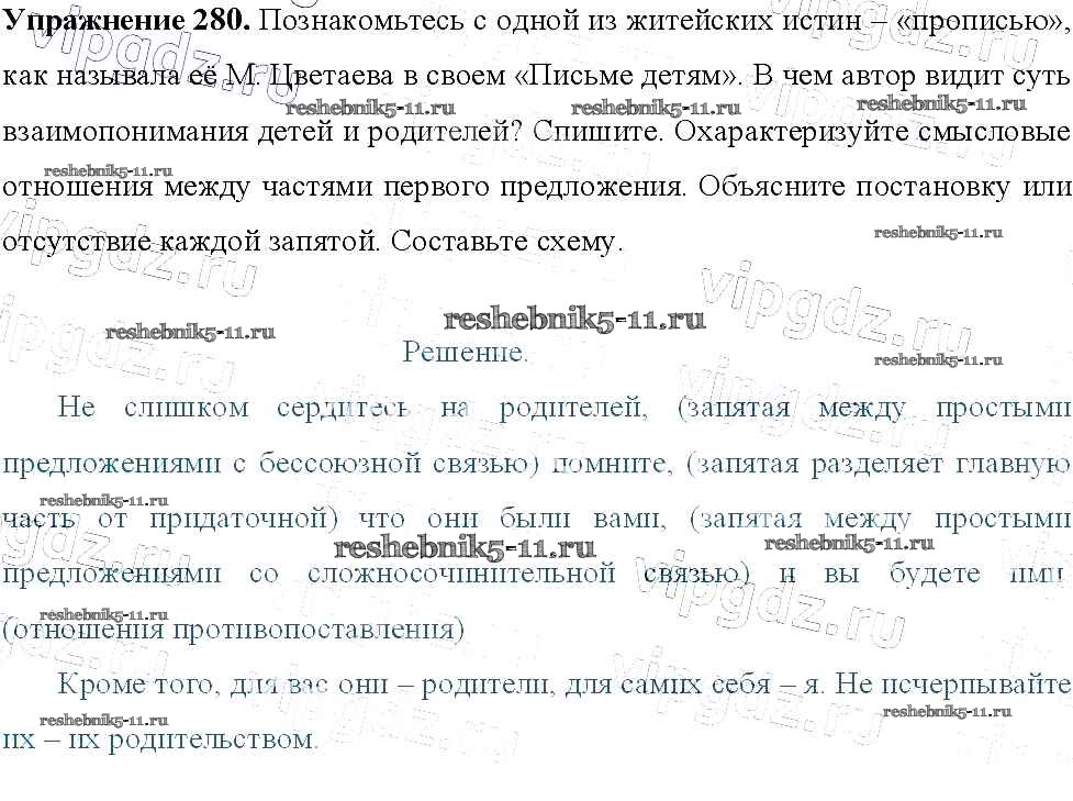 Готовая домашняя работа с ответами по Русскому языку за 9 класс Тростенцова, Ладыженская, Дейкина, Александрова Учебник Просвещение 2014 ФГОС - Упражнения 280