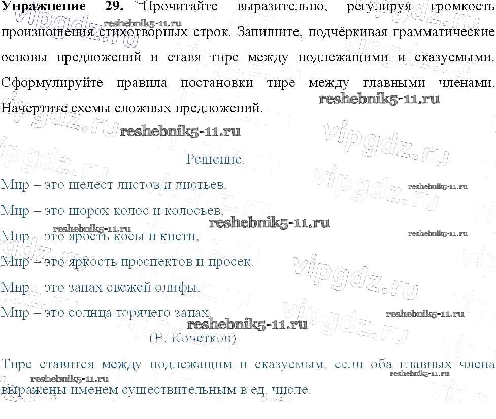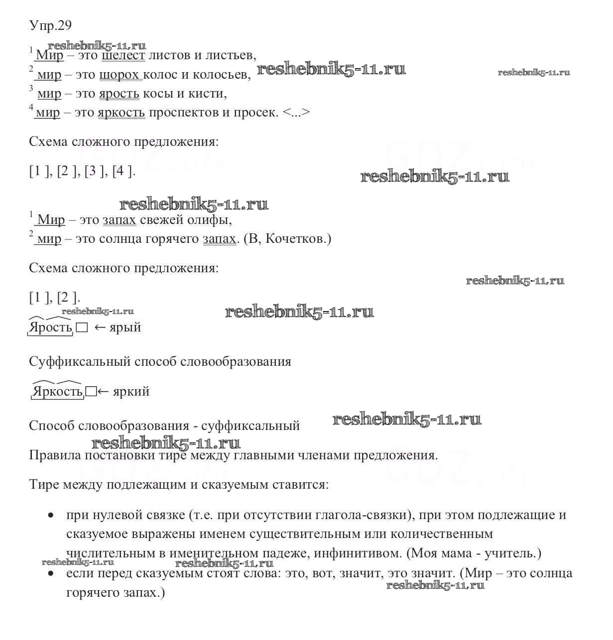 Готовая домашняя работа с ответами по Русскому языку за 9 класс Тростенцова, Ладыженская, Дейкина, Александрова Учебник Просвещение 2014 ФГОС - Упражнения 29