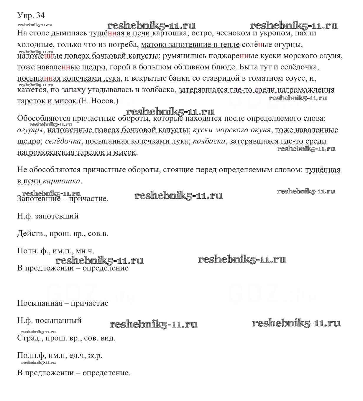 Готовая домашняя работа с ответами по Русскому языку за 9 класс Тростенцова, Ладыженская, Дейкина, Александрова Учебник Просвещение 2014 ФГОС - Упражнения 34