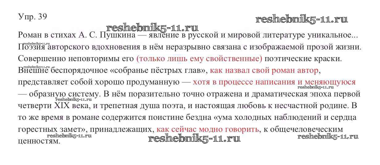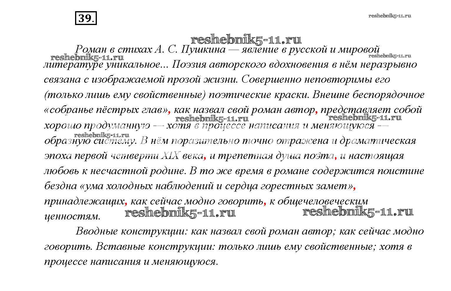 Готовая домашняя работа с ответами по Русскому языку за 9 класс Тростенцова, Ладыженская, Дейкина, Александрова Учебник Просвещение 2014 ФГОС - Упражнения 39