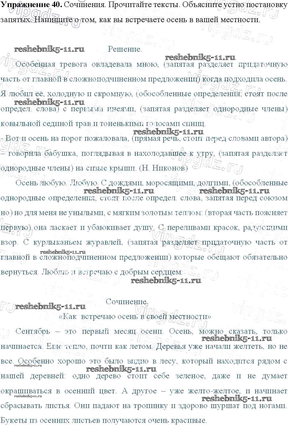 Готовая домашняя работа с ответами по Русскому языку за 9 класс Тростенцова, Ладыженская, Дейкина, Александрова Учебник Просвещение 2014 ФГОС - Упражнения 40