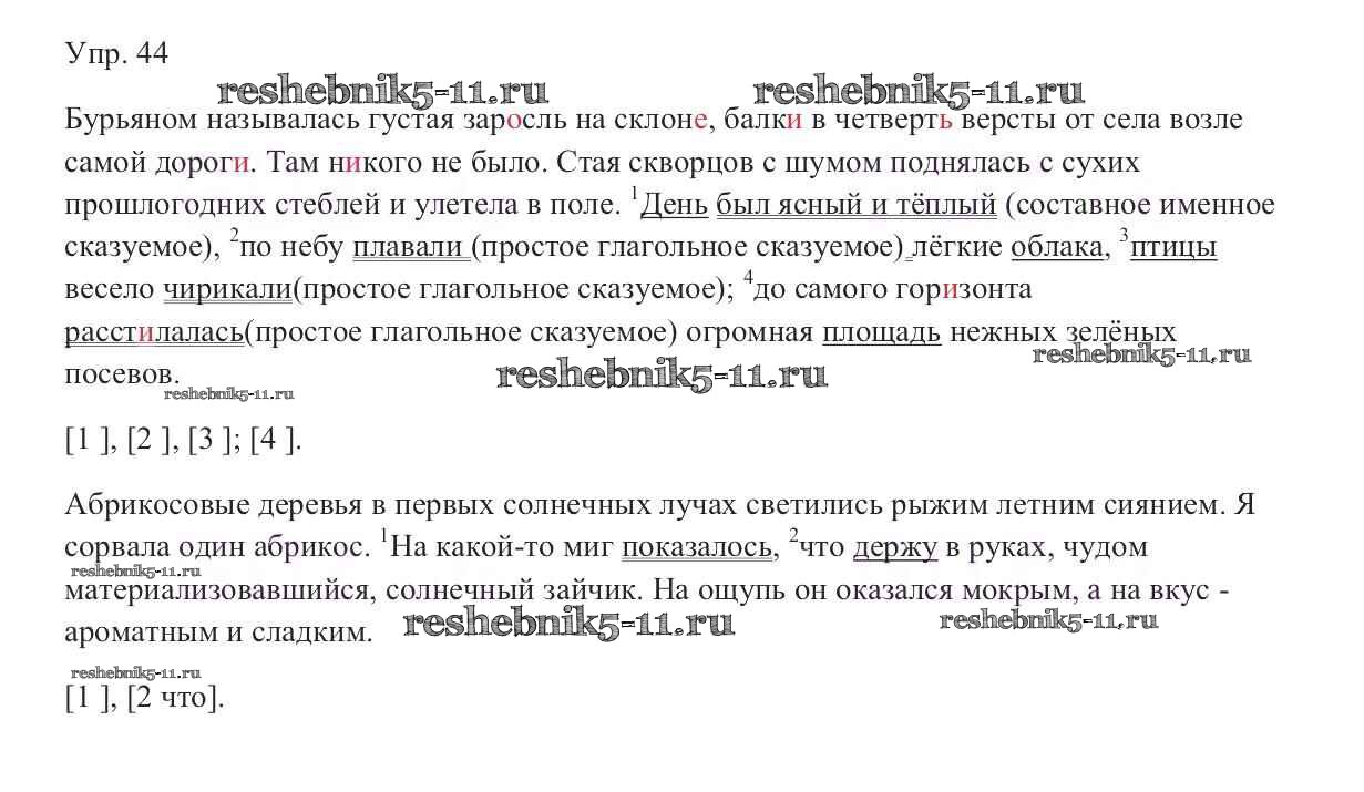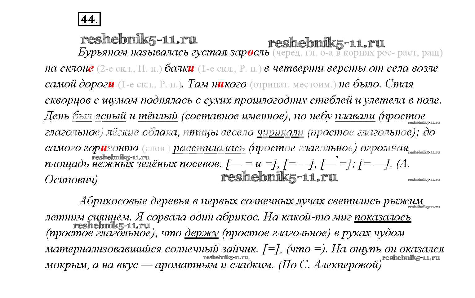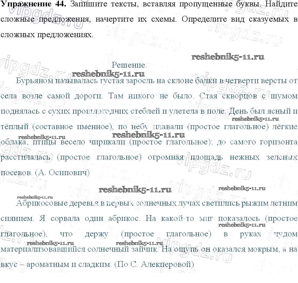 Готовая домашняя работа с ответами по Русскому языку за 9 класс Тростенцова, Ладыженская, Дейкина, Александрова Учебник Просвещение 2014 ФГОС - Упражнения 44