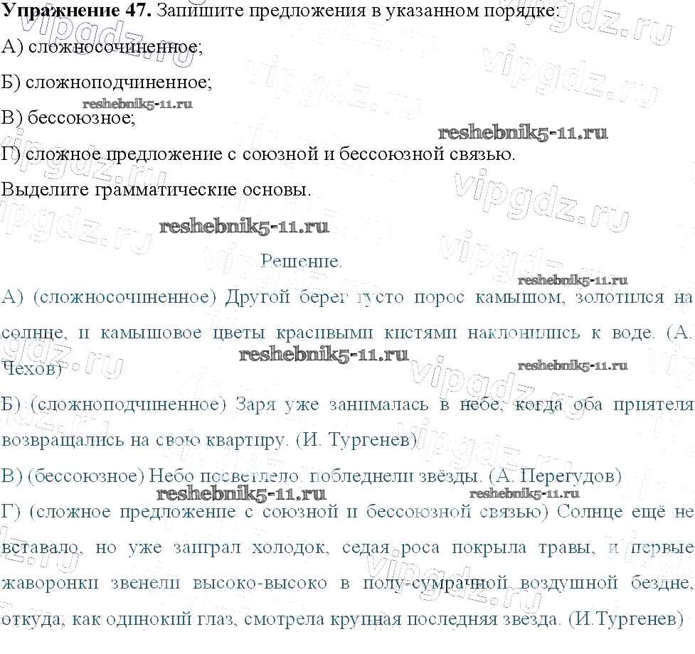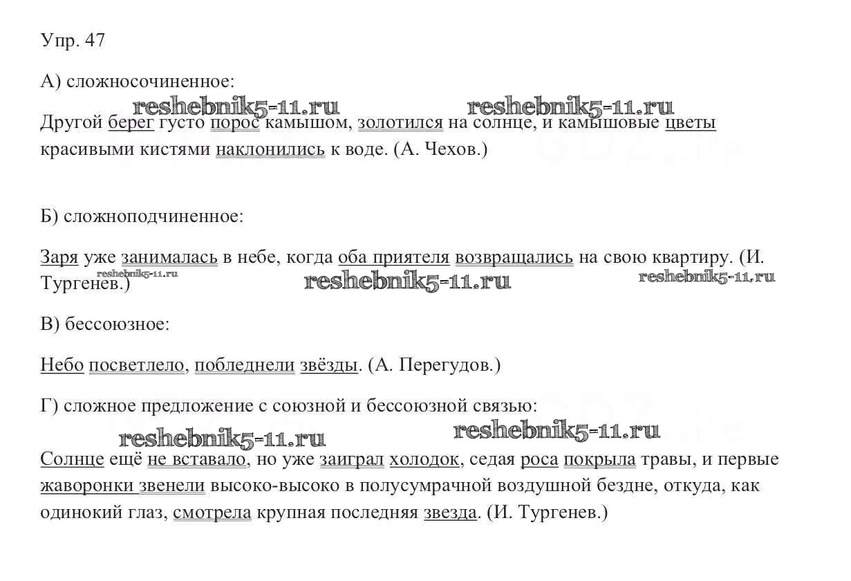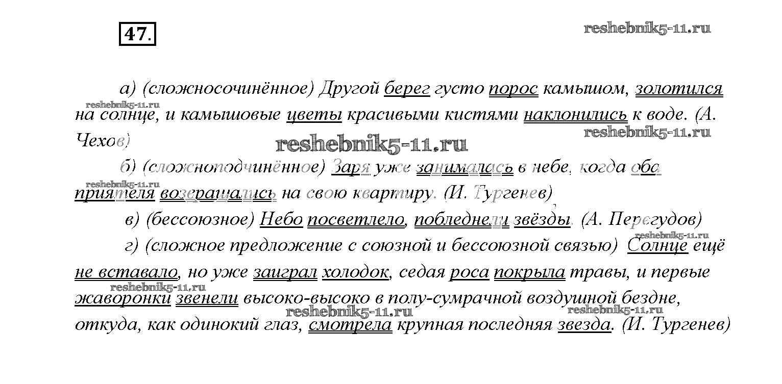 Готовая домашняя работа с ответами по Русскому языку за 9 класс Тростенцова, Ладыженская, Дейкина, Александрова Учебник Просвещение 2014 ФГОС - Упражнения 47