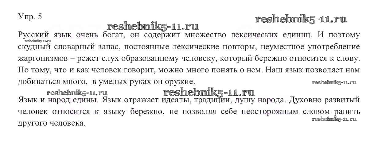 Русский язык за 9 класс Тростенцова Учебник Просвещение упражнение 5