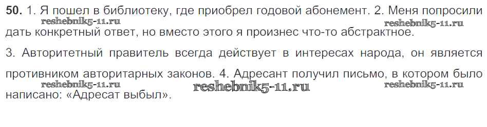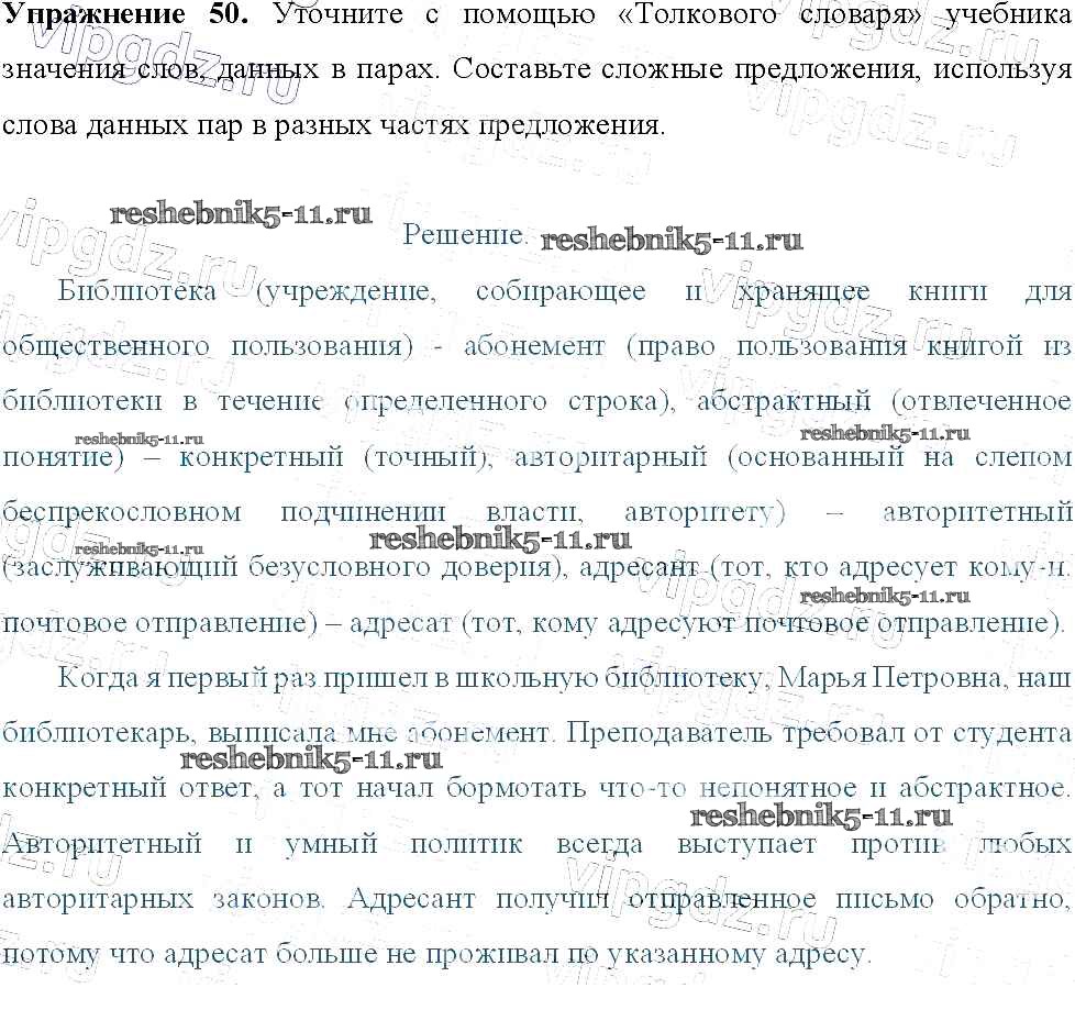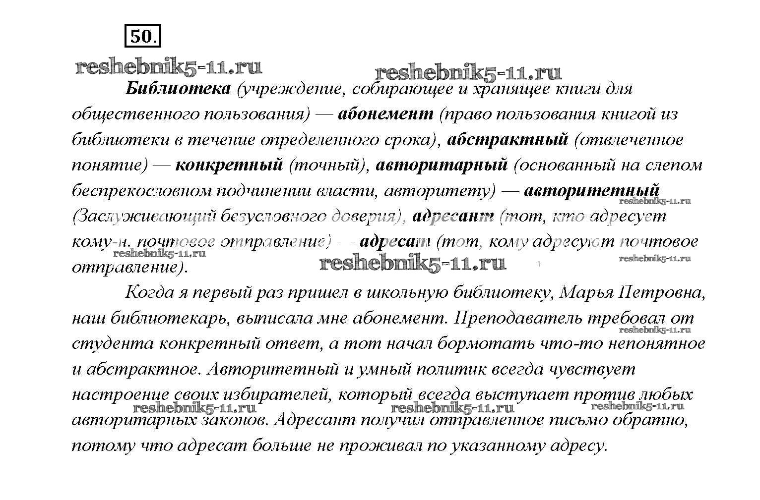 Готовая домашняя работа с ответами по Русскому языку за 9 класс Тростенцова, Ладыженская, Дейкина, Александрова Учебник Просвещение 2014 ФГОС - Упражнения 50