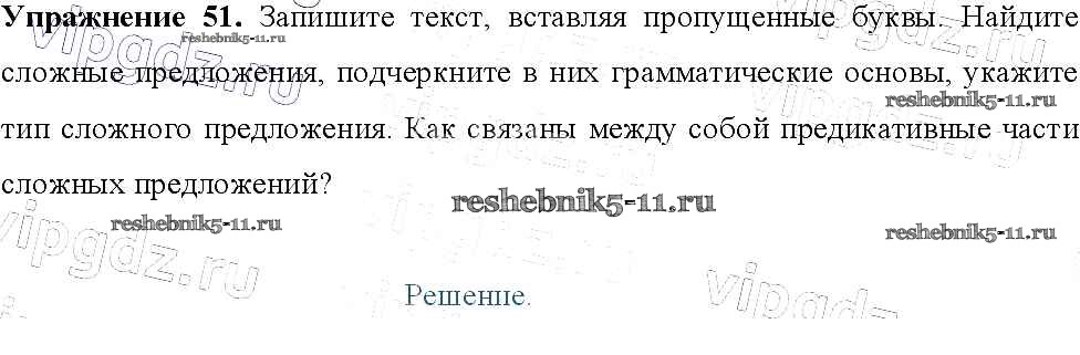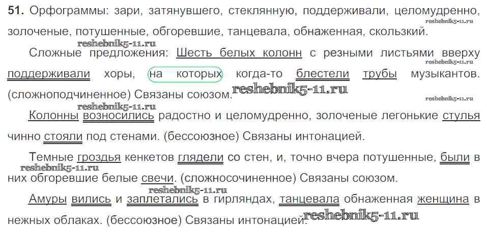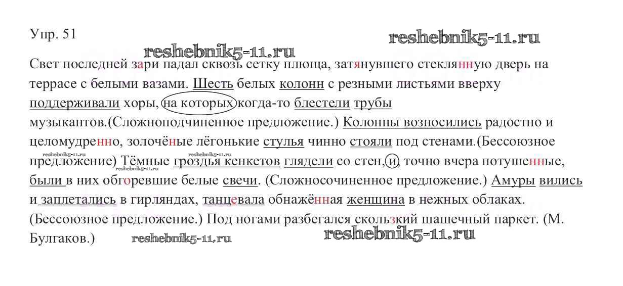 Готовая домашняя работа с ответами по Русскому языку за 9 класс Тростенцова, Ладыженская, Дейкина, Александрова Учебник Просвещение 2014 ФГОС - Упражнения 51
