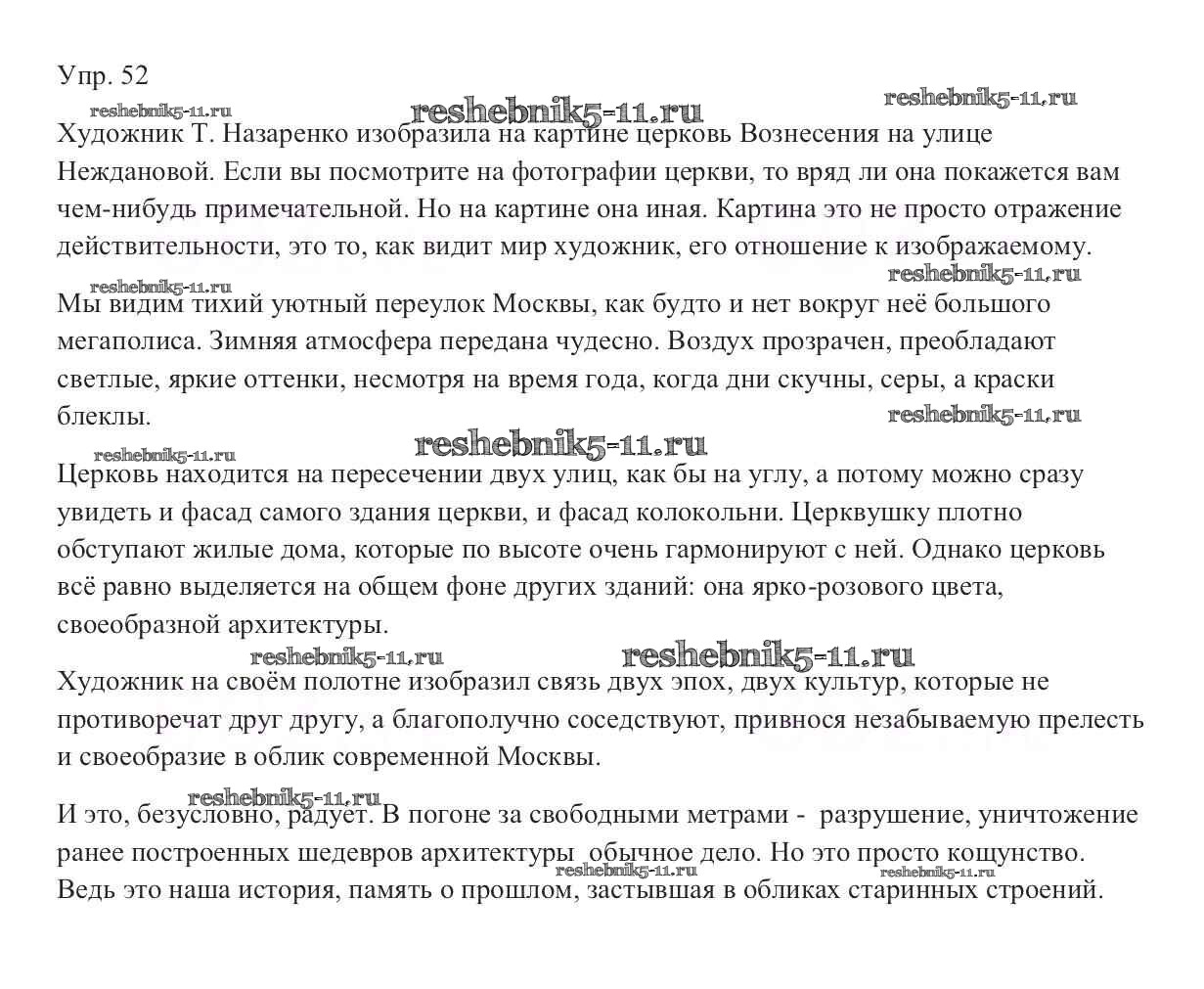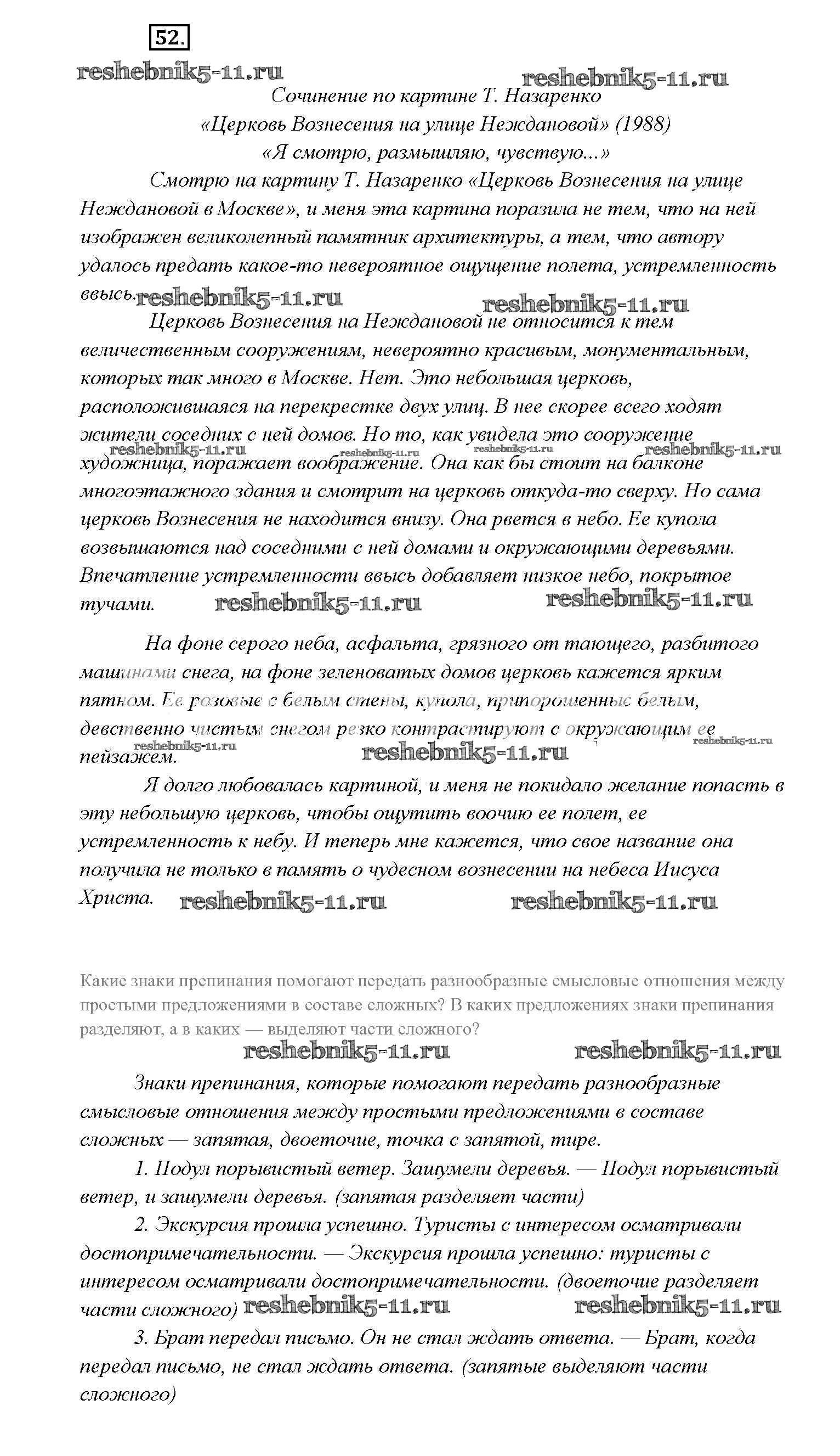 Готовая домашняя работа с ответами по Русскому языку за 9 класс Тростенцова, Ладыженская, Дейкина, Александрова Учебник Просвещение 2014 ФГОС - Упражнения 52