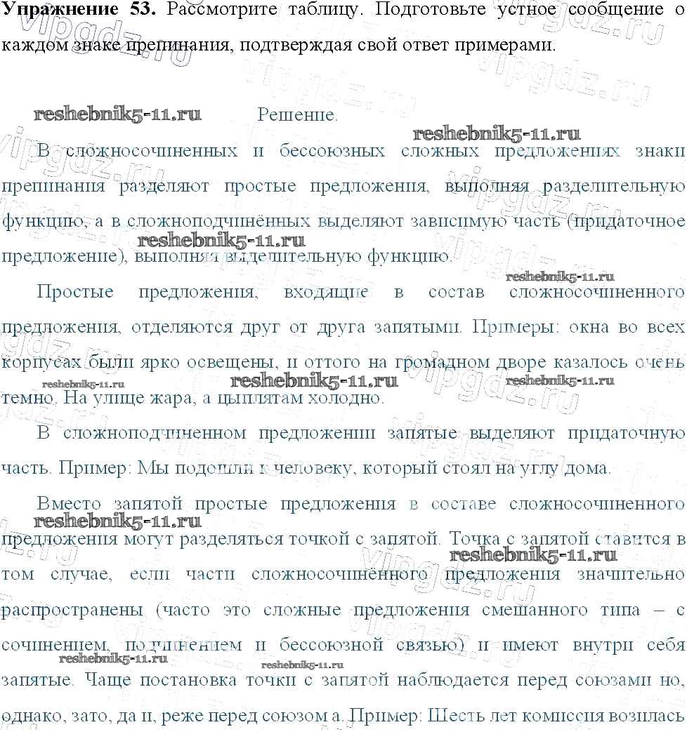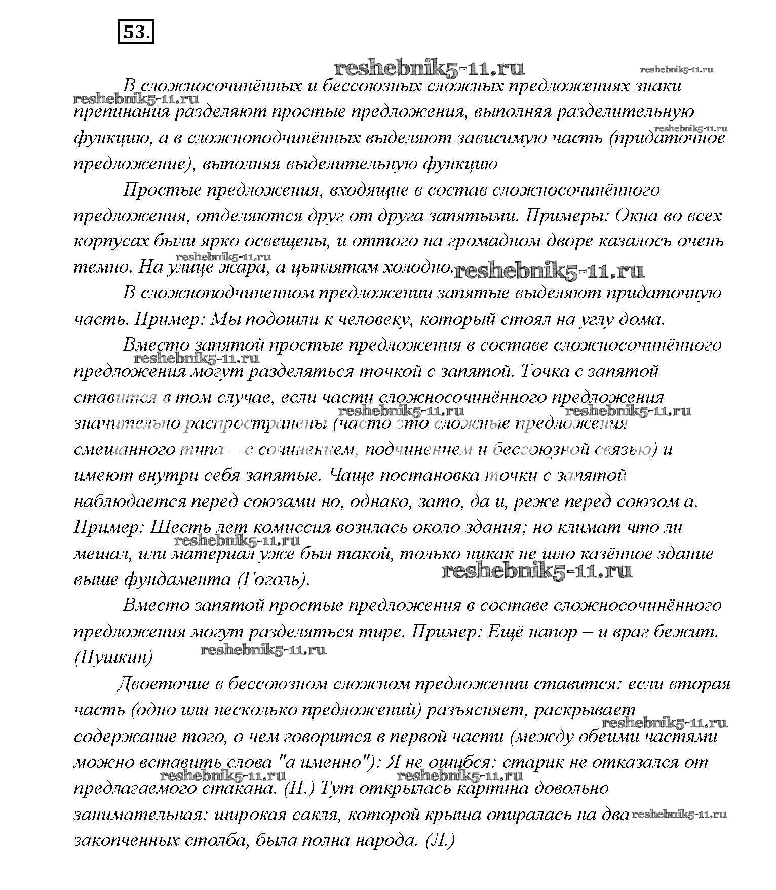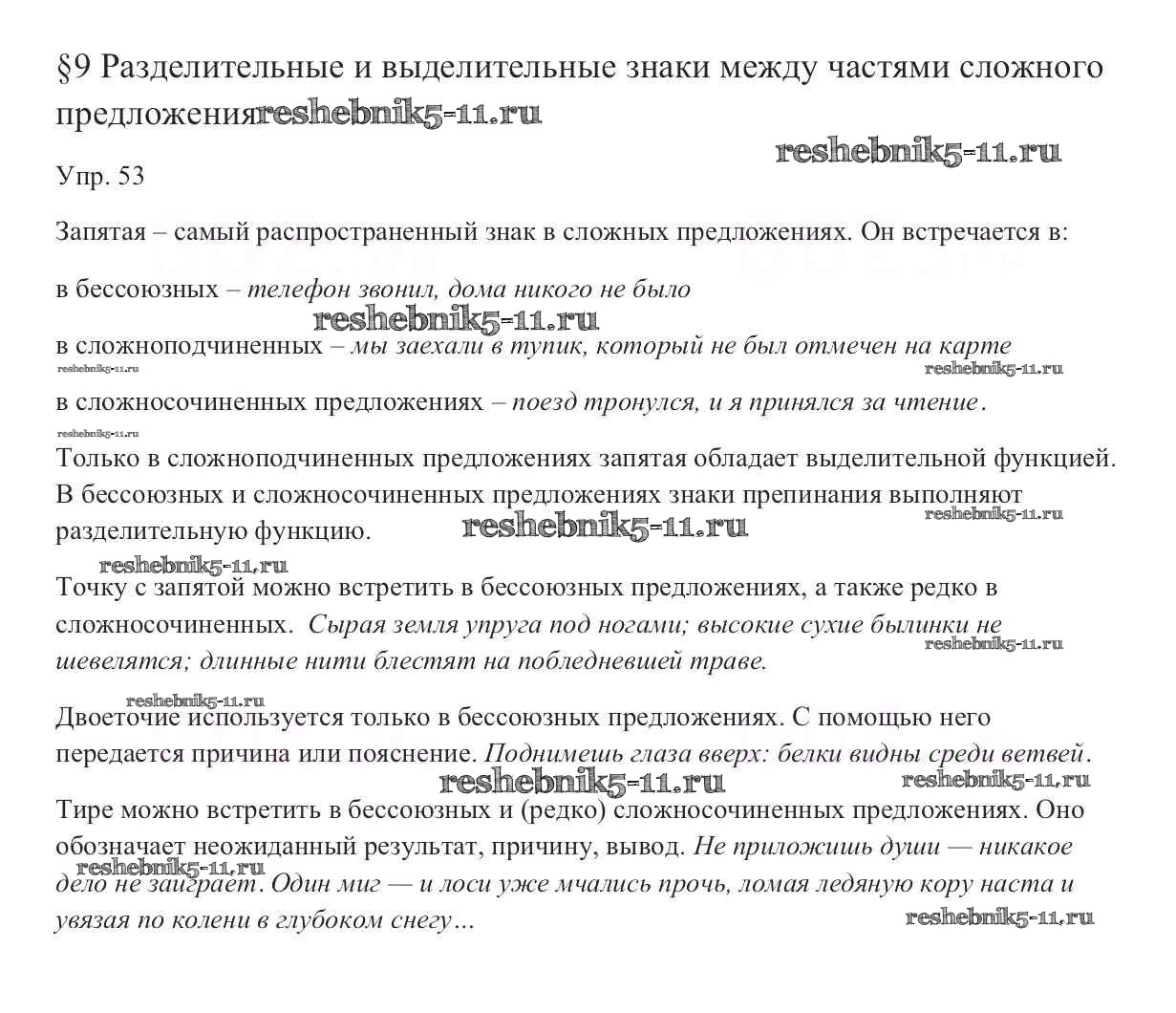 Готовая домашняя работа с ответами по Русскому языку за 9 класс Тростенцова, Ладыженская, Дейкина, Александрова Учебник Просвещение 2014 ФГОС - Упражнения 53