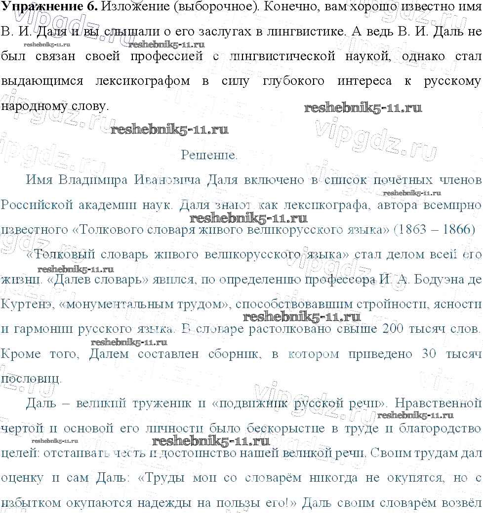 Готовая домашняя работа с ответами по Русскому языку за 9 класс Тростенцова, Ладыженская, Дейкина, Александрова Учебник Просвещение 2014 ФГОС - Упражнения 6
