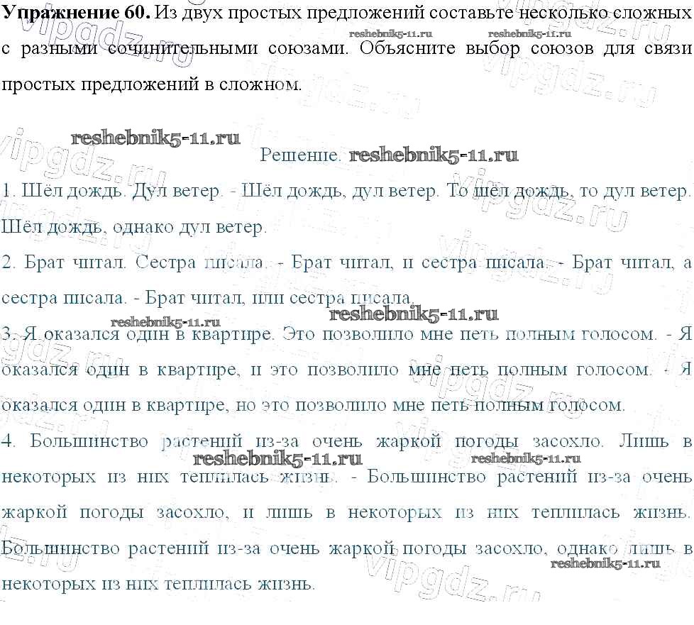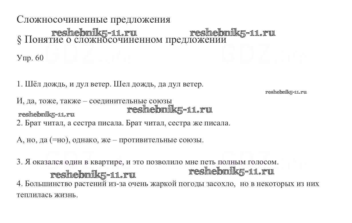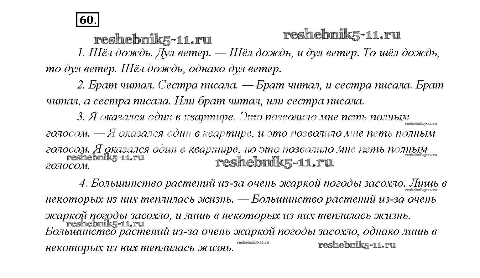 Готовая домашняя работа с ответами по Русскому языку за 9 класс Тростенцова, Ладыженская, Дейкина, Александрова Учебник Просвещение 2014 ФГОС - Упражнения 60