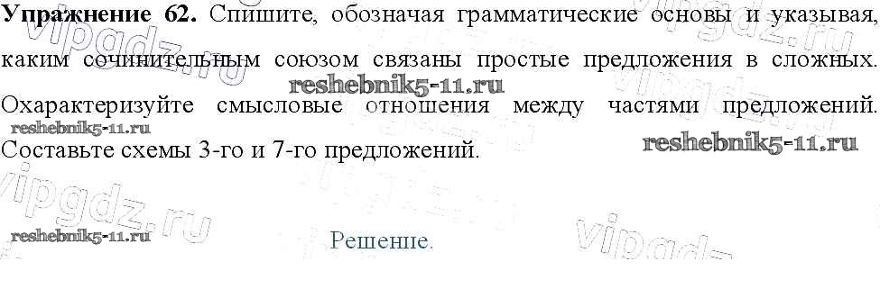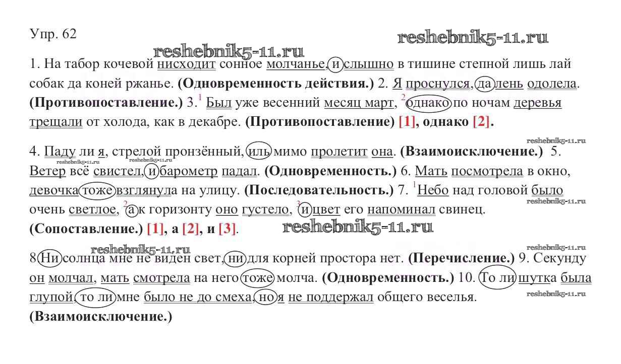 Готовая домашняя работа с ответами по Русскому языку за 9 класс Тростенцова, Ладыженская, Дейкина, Александрова Учебник Просвещение 2014 ФГОС - Упражнения 62