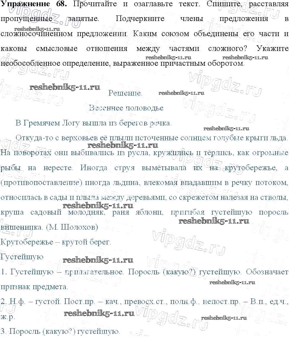 Готовая домашняя работа с ответами по Русскому языку за 9 класс Тростенцова, Ладыженская, Дейкина, Александрова Учебник Просвещение 2014 ФГОС - Упражнения 68