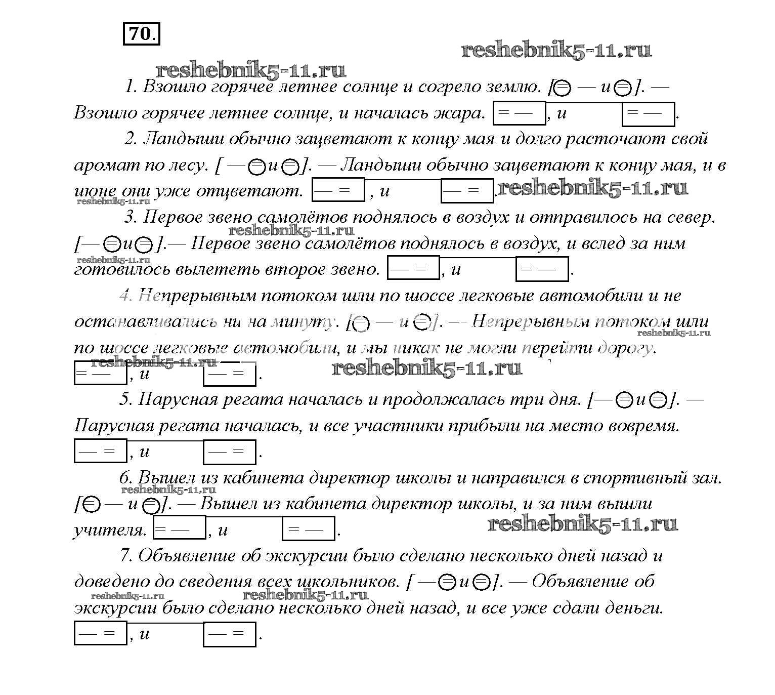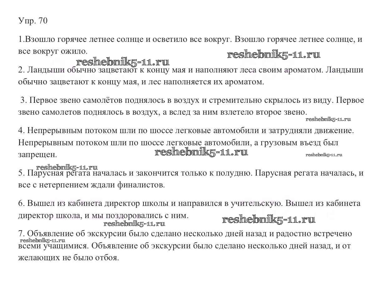 Готовая домашняя работа с ответами по Русскому языку за 9 класс Тростенцова, Ладыженская, Дейкина, Александрова Учебник Просвещение 2014 ФГОС - Упражнения 70