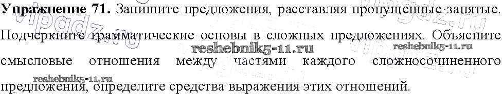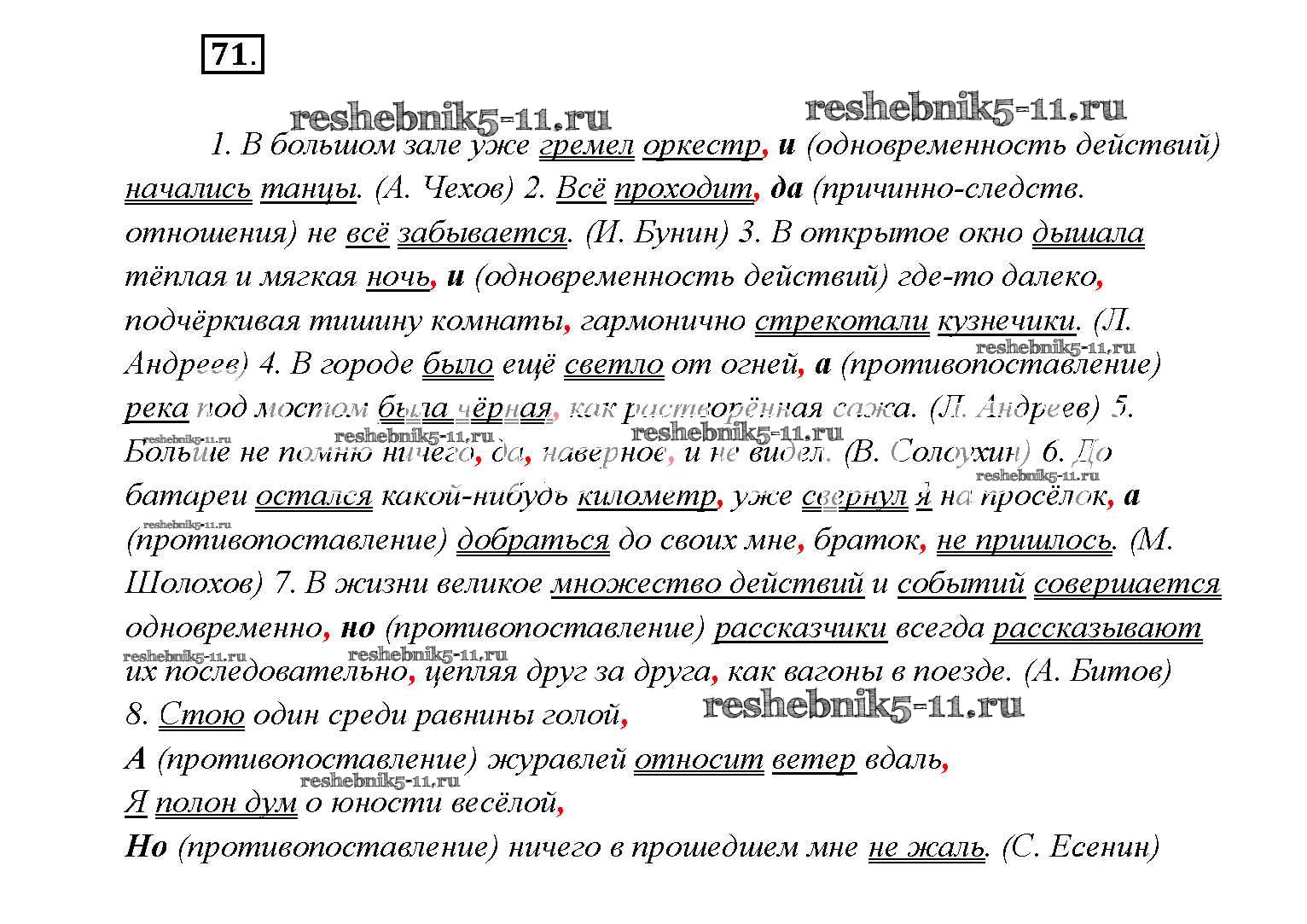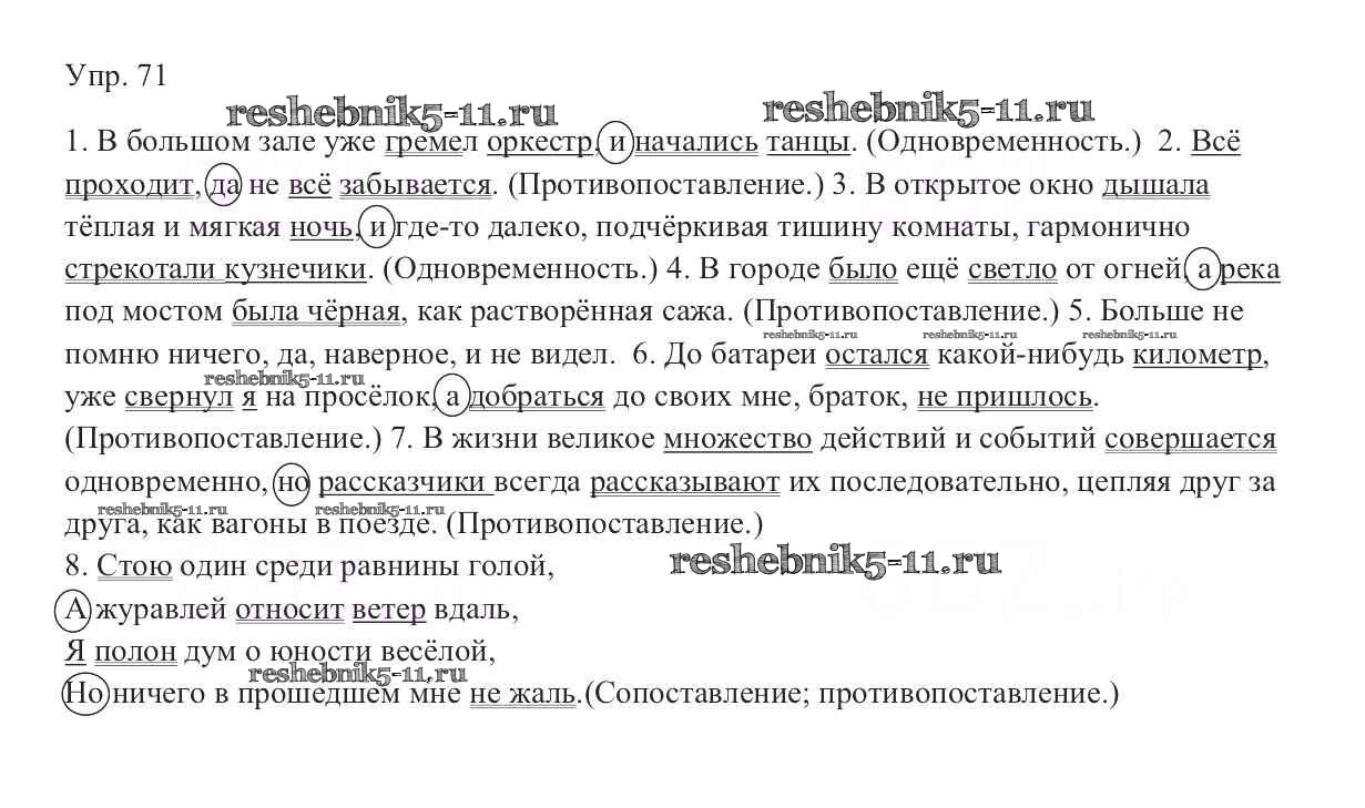 Готовая домашняя работа с ответами по Русскому языку за 9 класс Тростенцова, Ладыженская, Дейкина, Александрова Учебник Просвещение 2014 ФГОС - Упражнения 71