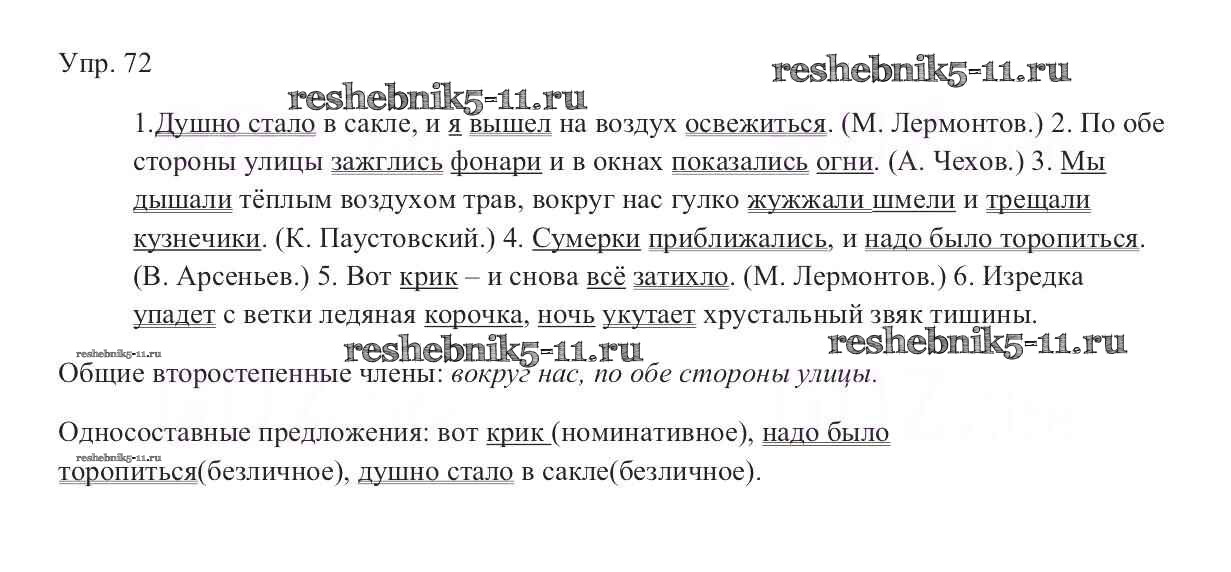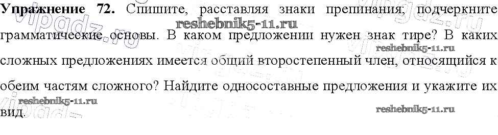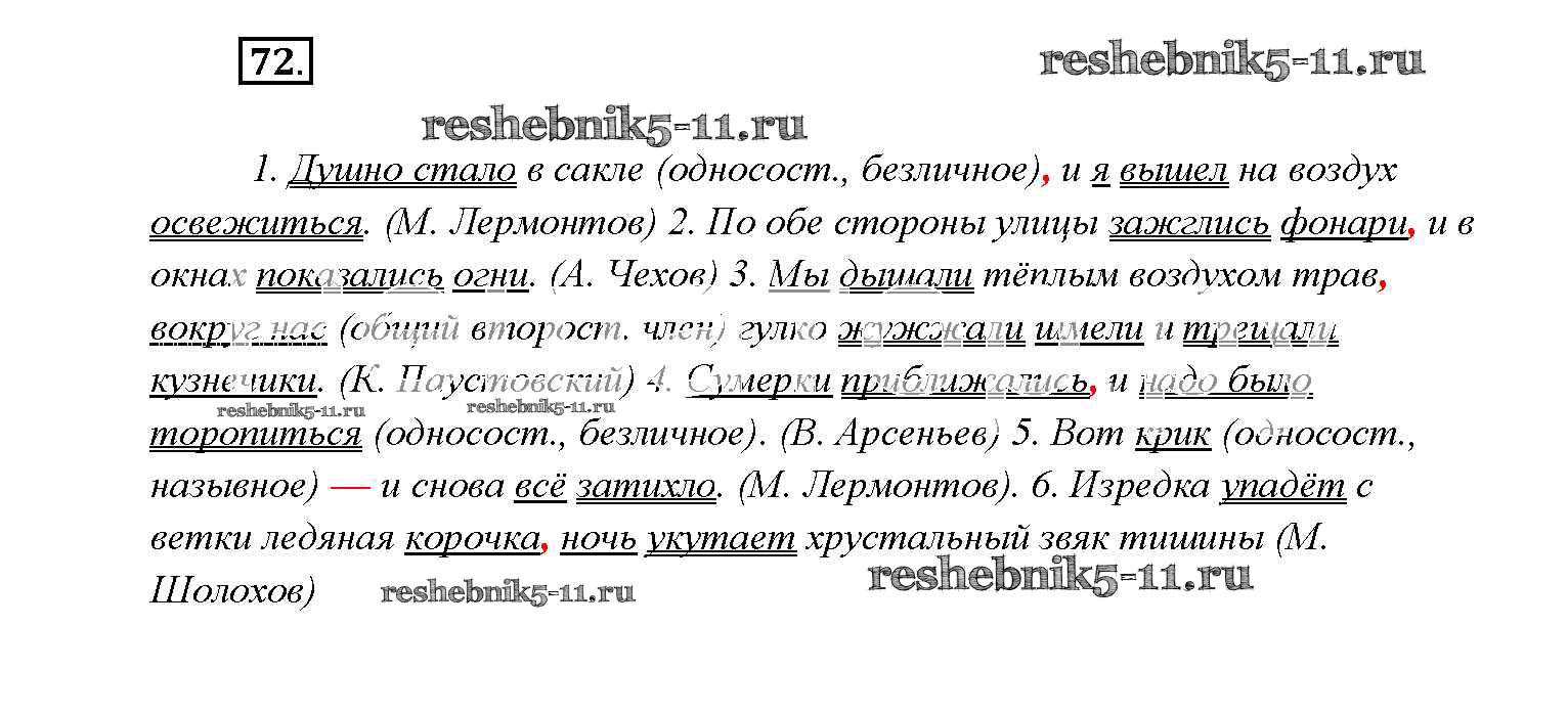Готовая домашняя работа с ответами по Русскому языку за 9 класс Тростенцова, Ладыженская, Дейкина, Александрова Учебник Просвещение 2014 ФГОС - Упражнения 72