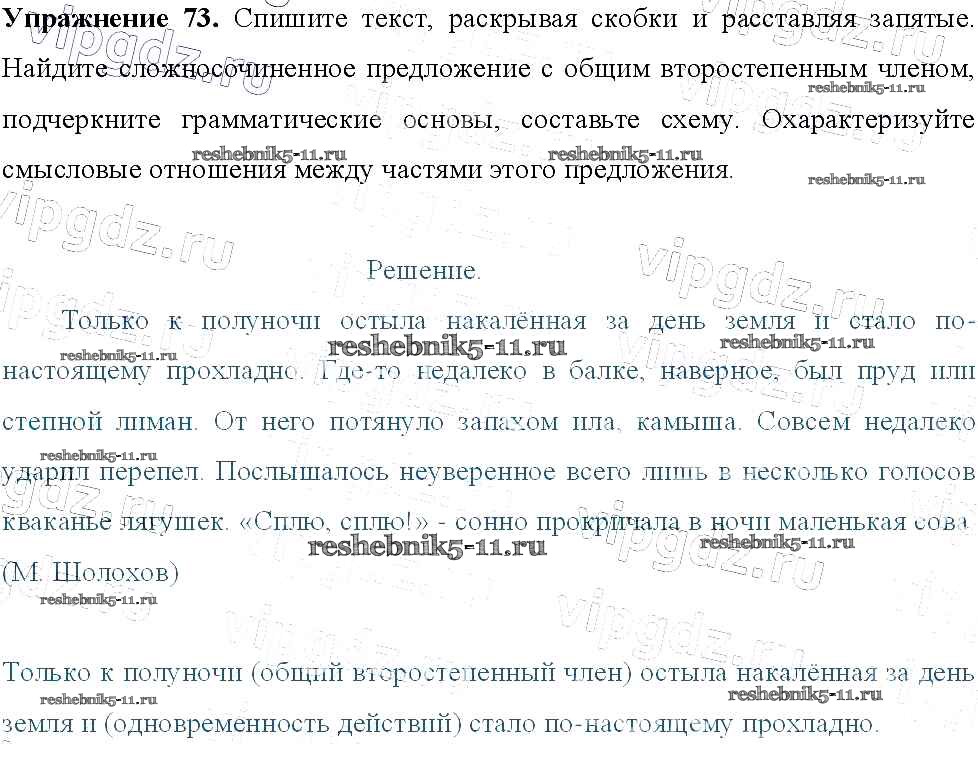 Готовая домашняя работа с ответами по Русскому языку за 9 класс Тростенцова, Ладыженская, Дейкина, Александрова Учебник Просвещение 2014 ФГОС - Упражнения 73