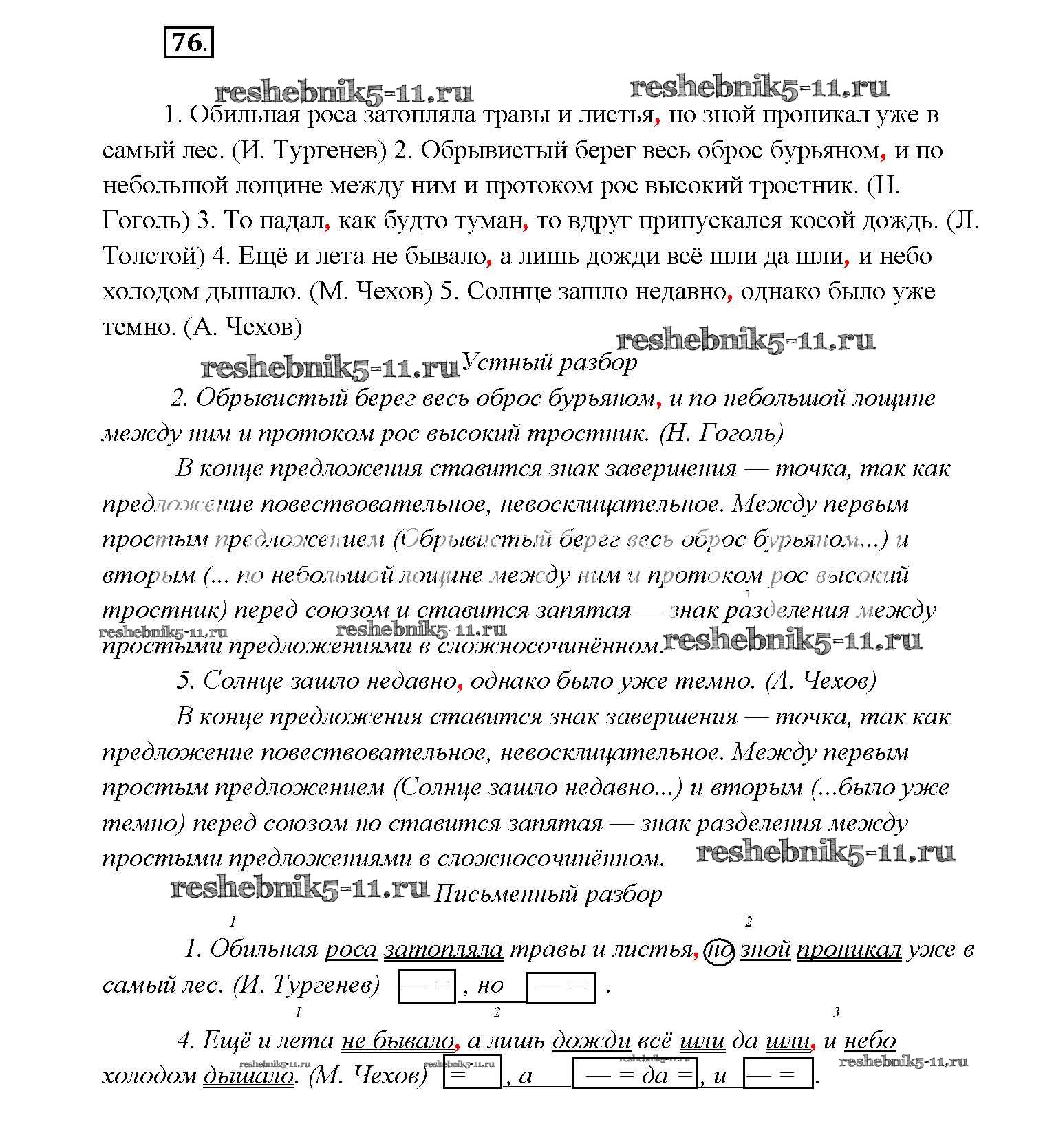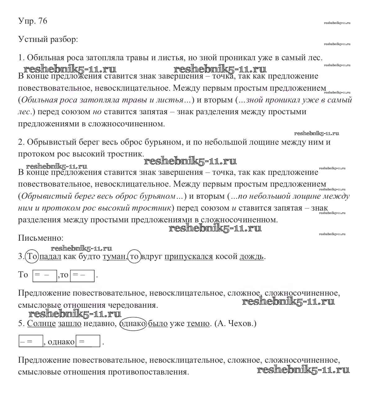 Готовая домашняя работа с ответами по Русскому языку за 9 класс Тростенцова, Ладыженская, Дейкина, Александрова Учебник Просвещение 2014 ФГОС - Упражнения 76