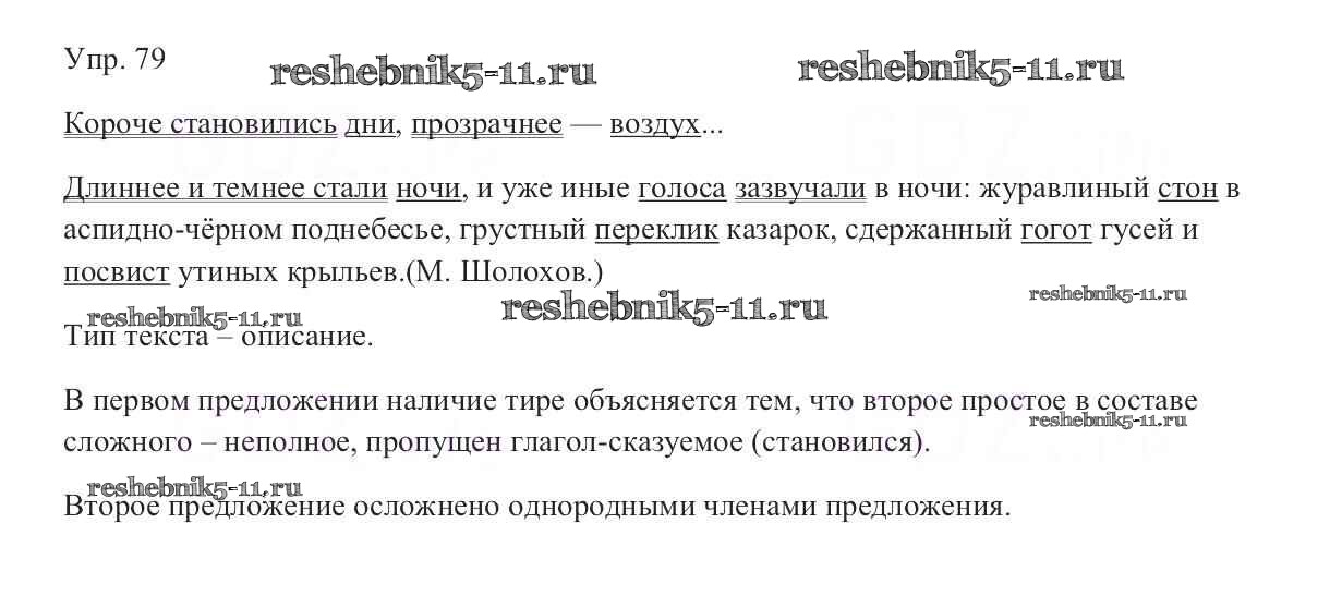 Готовая домашняя работа с ответами по Русскому языку за 9 класс Тростенцова, Ладыженская, Дейкина, Александрова Учебник Просвещение 2014 ФГОС - Упражнения 79