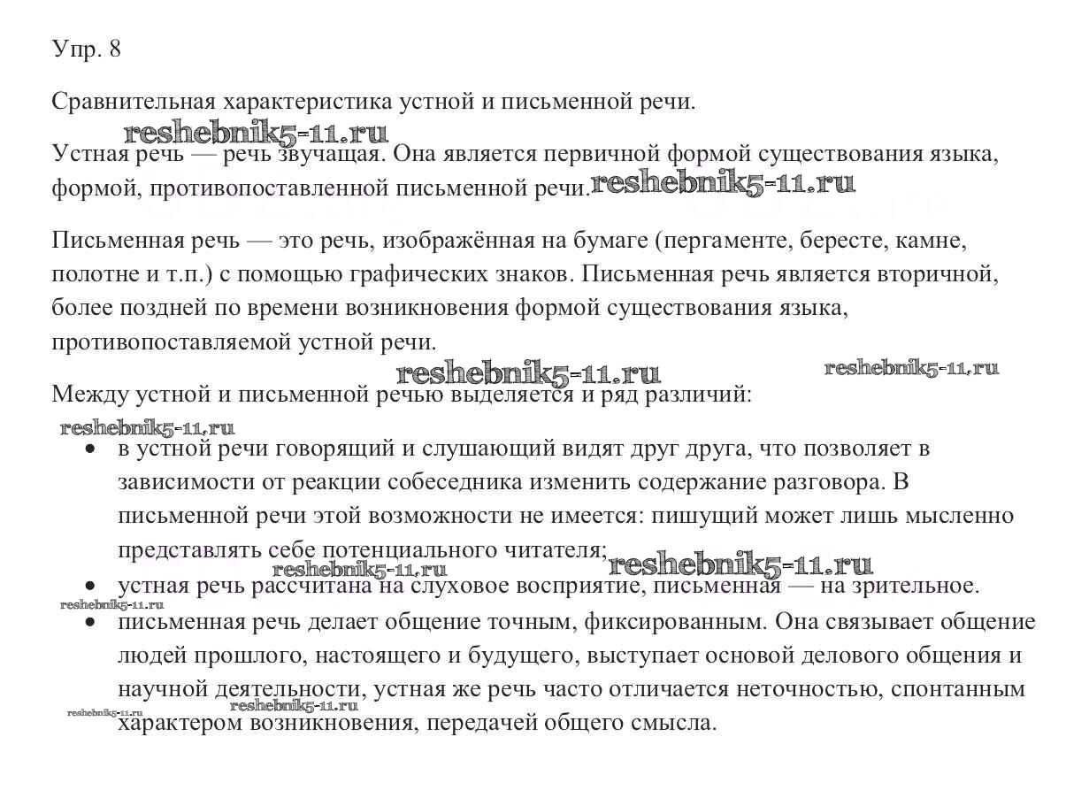 Русский язык за 9 класс Тростенцова Учебник Просвещение упражнение 8