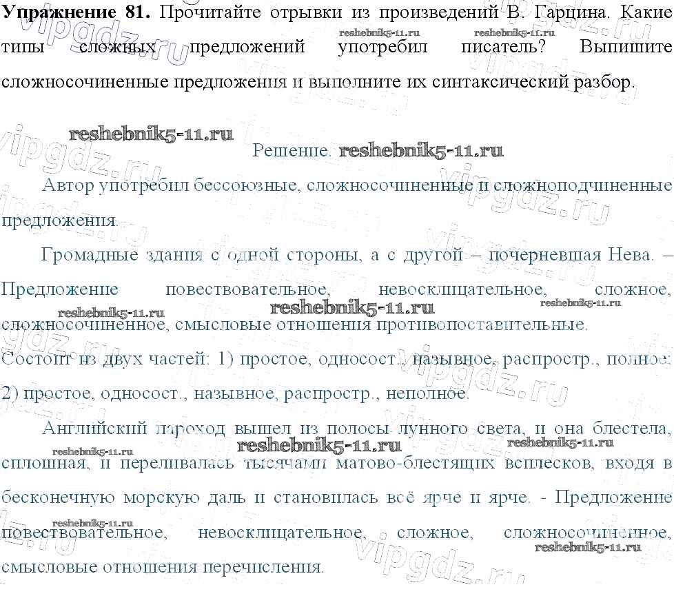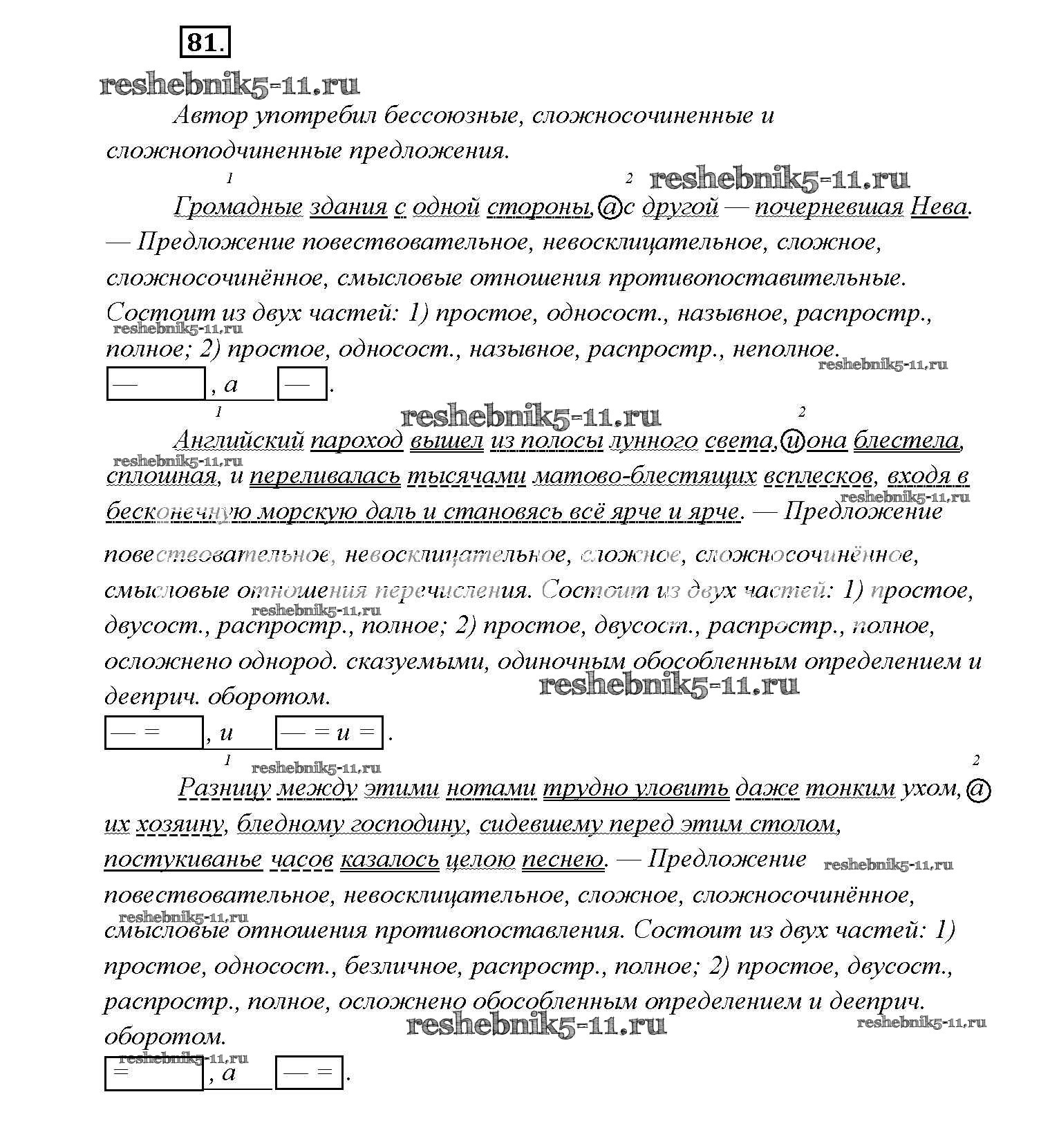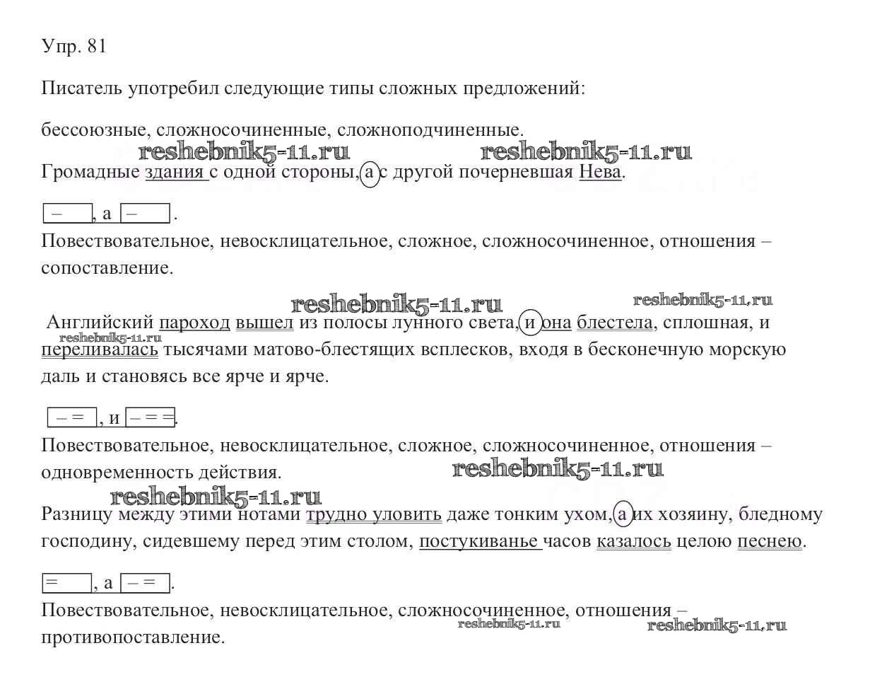 Готовая домашняя работа с ответами по Русскому языку за 9 класс Тростенцова, Ладыженская, Дейкина, Александрова Учебник Просвещение 2014 ФГОС - Упражнения 81