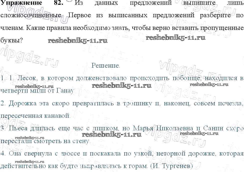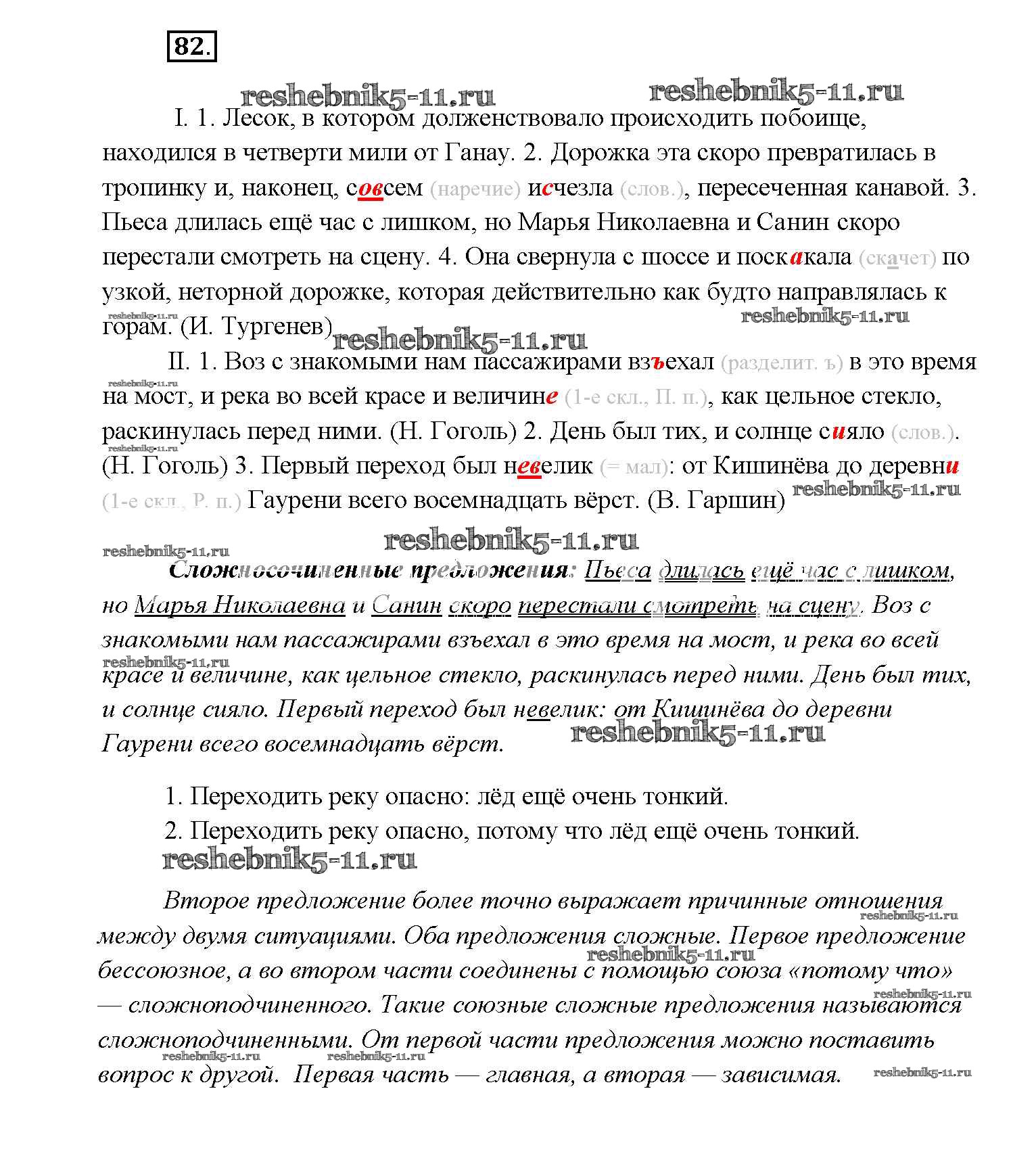Готовая домашняя работа с ответами по Русскому языку за 9 класс Тростенцова, Ладыженская, Дейкина, Александрова Учебник Просвещение 2014 ФГОС - Упражнения 82