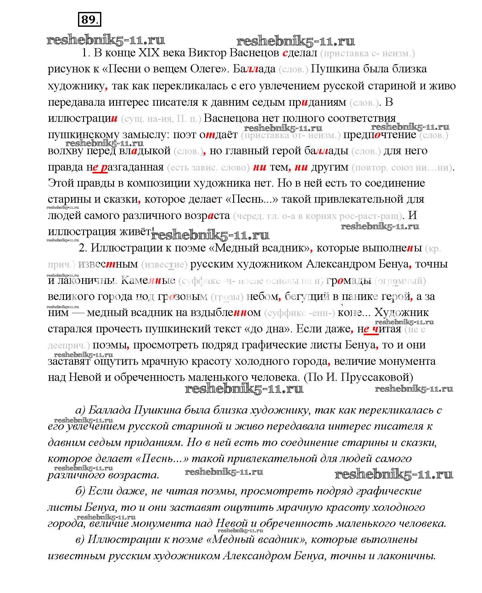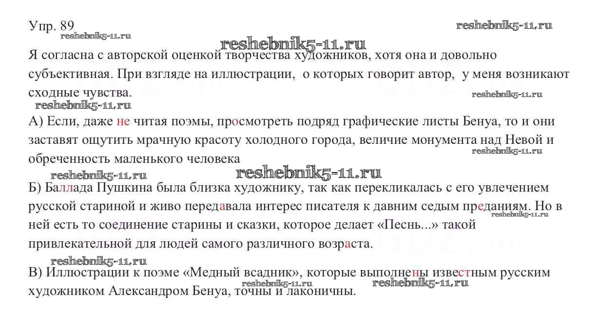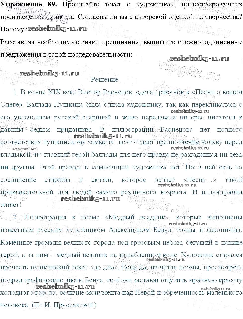 Готовая домашняя работа с ответами по Русскому языку за 9 класс Тростенцова, Ладыженская, Дейкина, Александрова Учебник Просвещение 2014 ФГОС - Упражнения 89