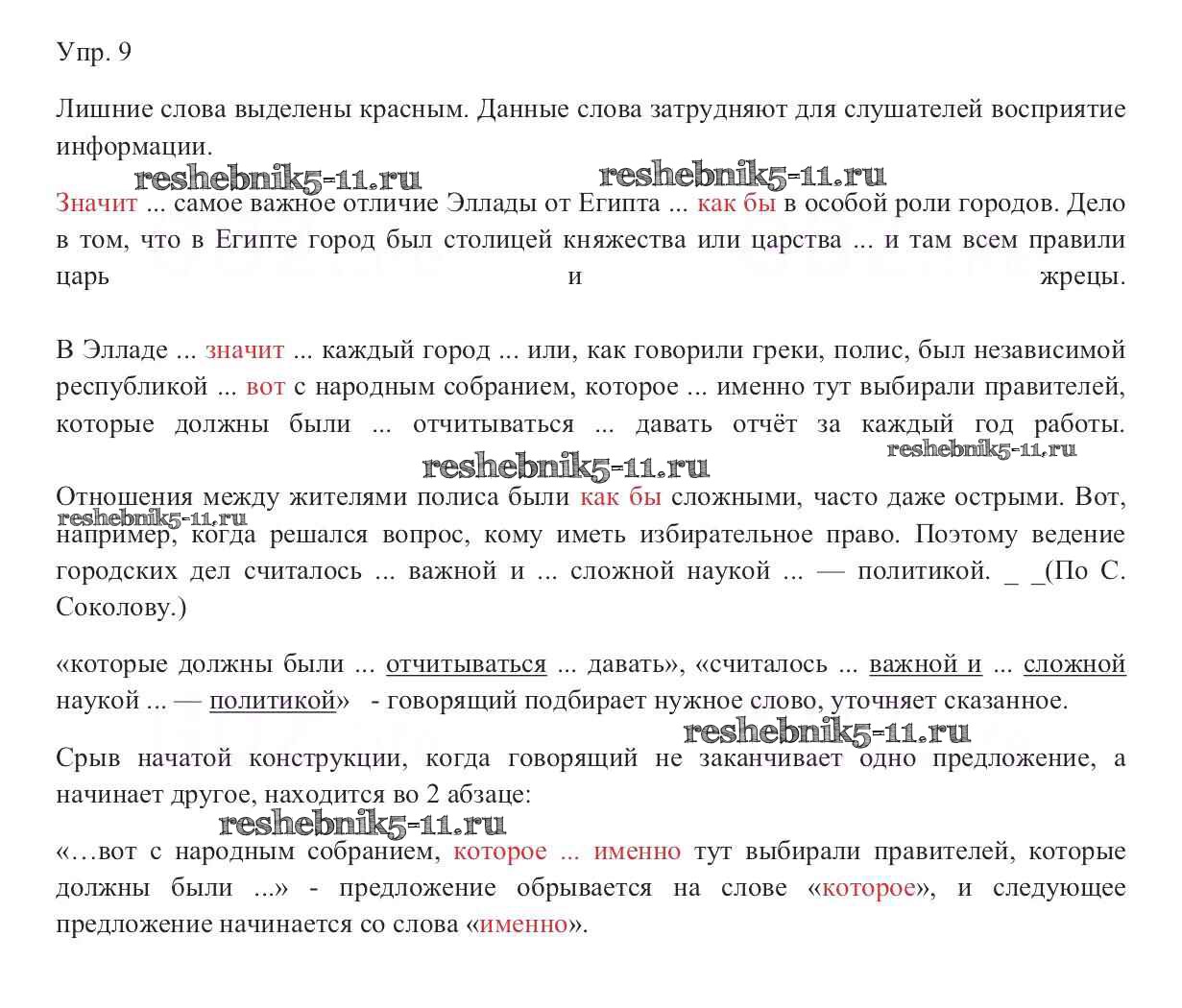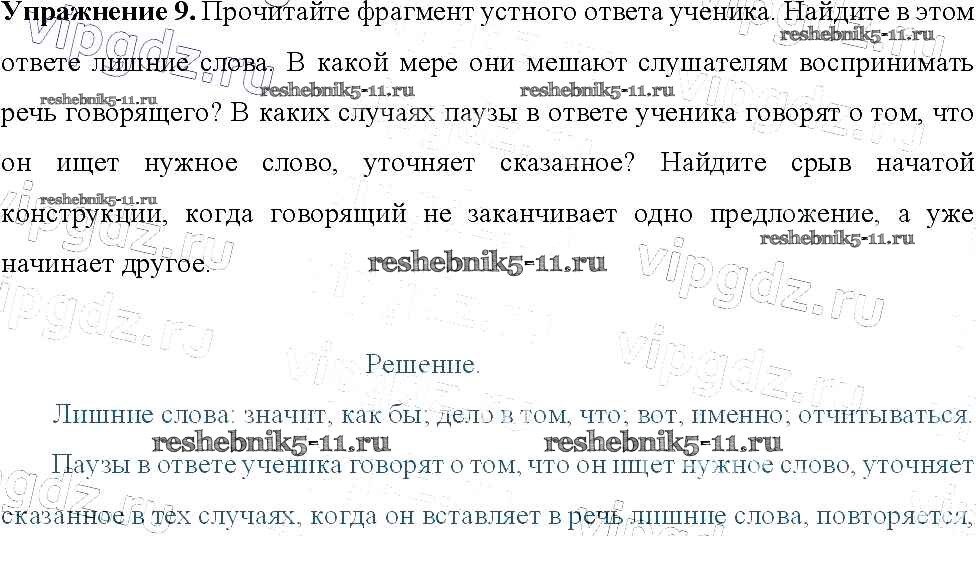 Русский язык за 9 класс Тростенцова Учебник Просвещение упражнение 9
