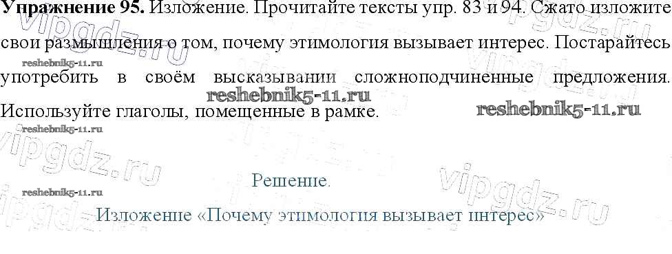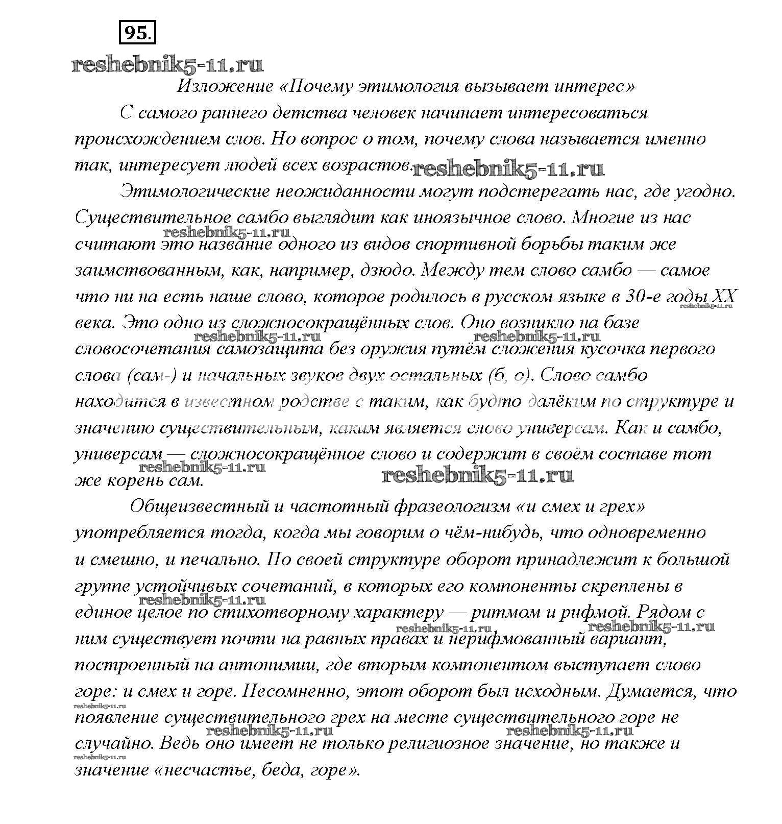 Готовая домашняя работа с ответами по Русскому языку за 9 класс Тростенцова, Ладыженская, Дейкина, Александрова Учебник Просвещение 2014 ФГОС - Упражнения 95