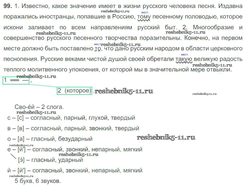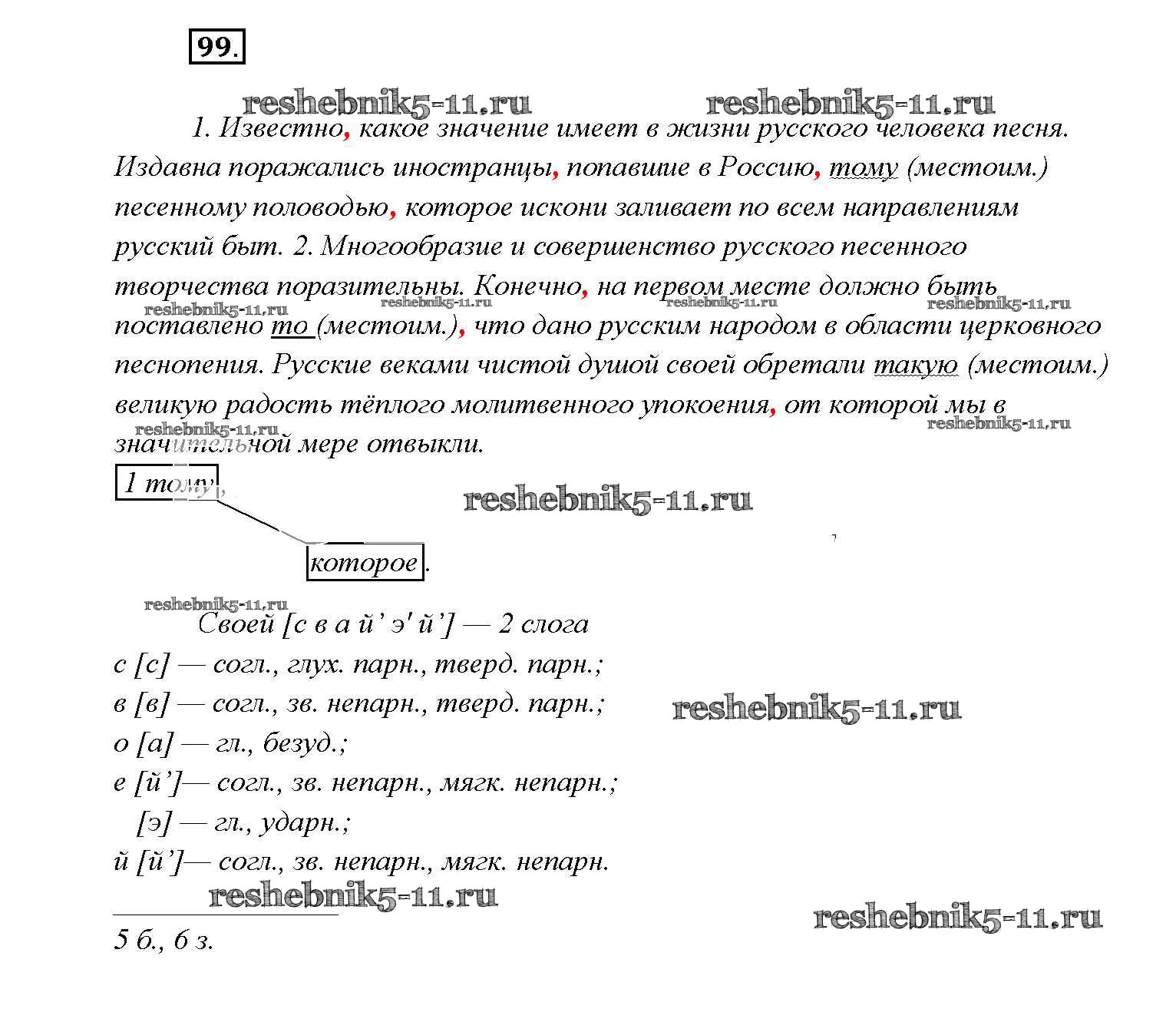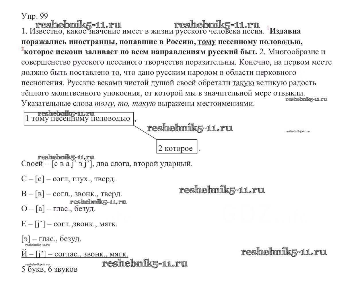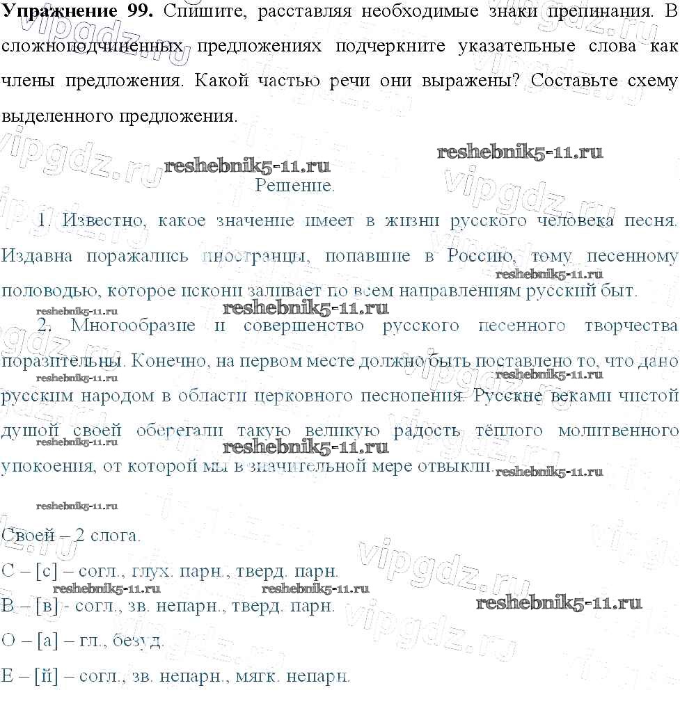 Готовая домашняя работа с ответами по Русскому языку за 9 класс Тростенцова, Ладыженская, Дейкина, Александрова Учебник Просвещение 2014 ФГОС - Упражнения 99