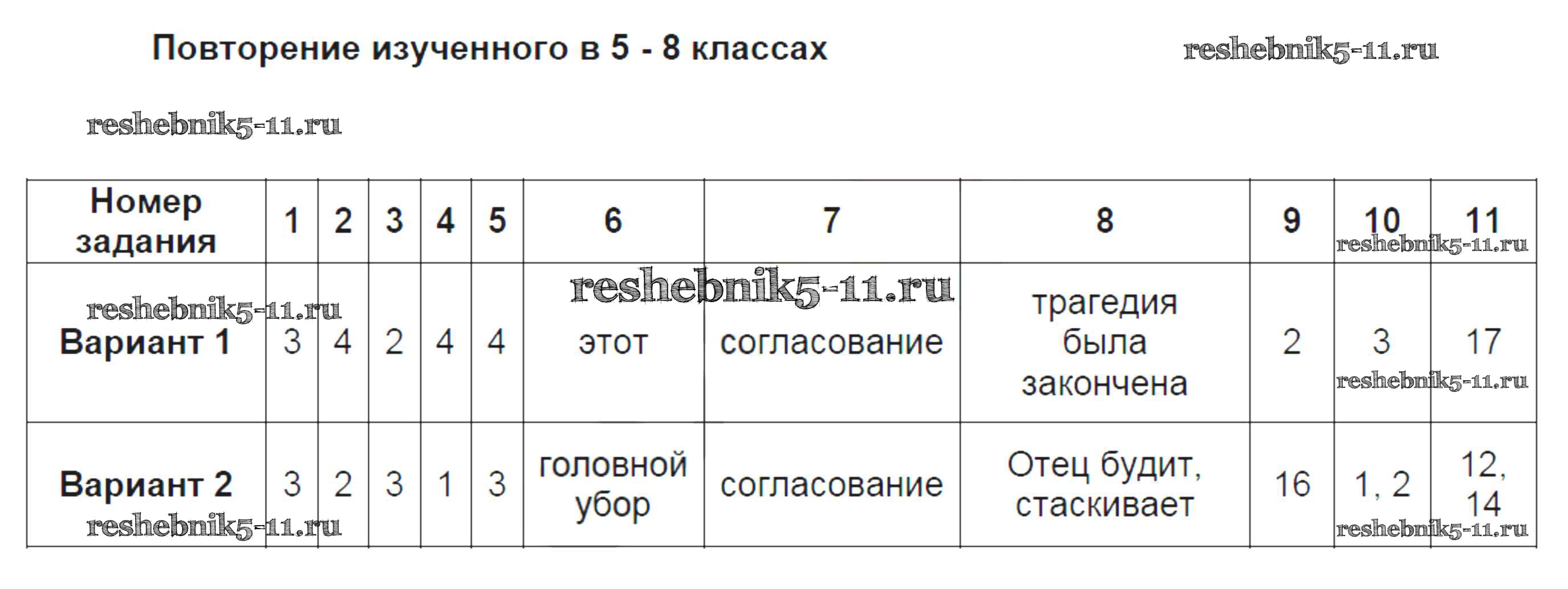 Готовая домашняя работа с ответами по Русскому языку за 9 класс Груздева Тесты УМК Экзамен 2015 ФГОС - Повторение 1