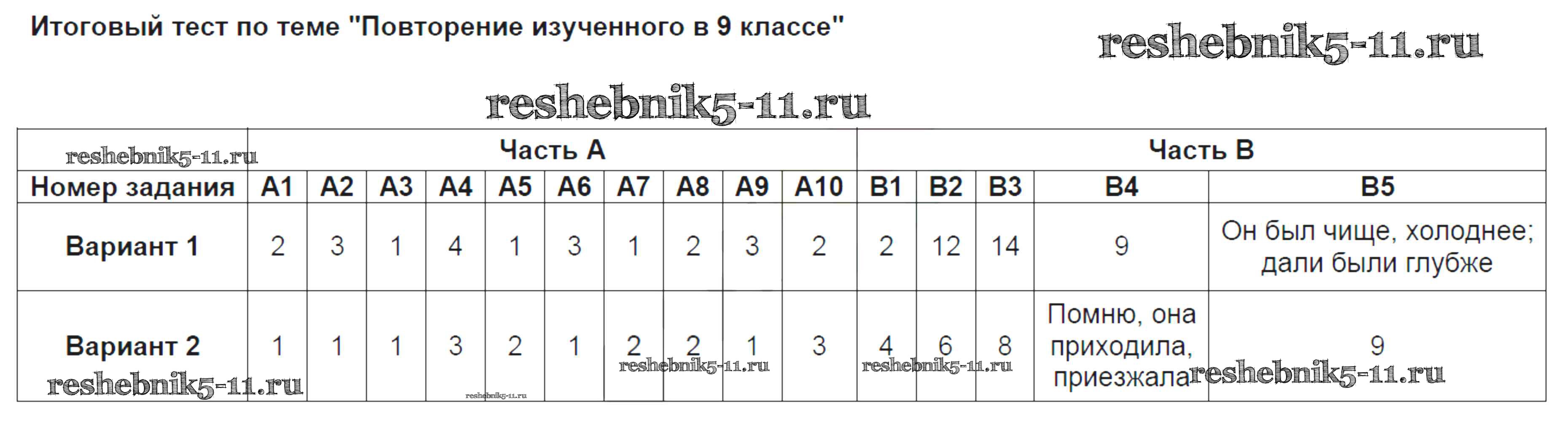 Готовая домашняя работа с ответами по Русскому языку за 9 класс Груздева Тесты УМК Экзамен 2015 ФГОС - Итоговые тесты 1