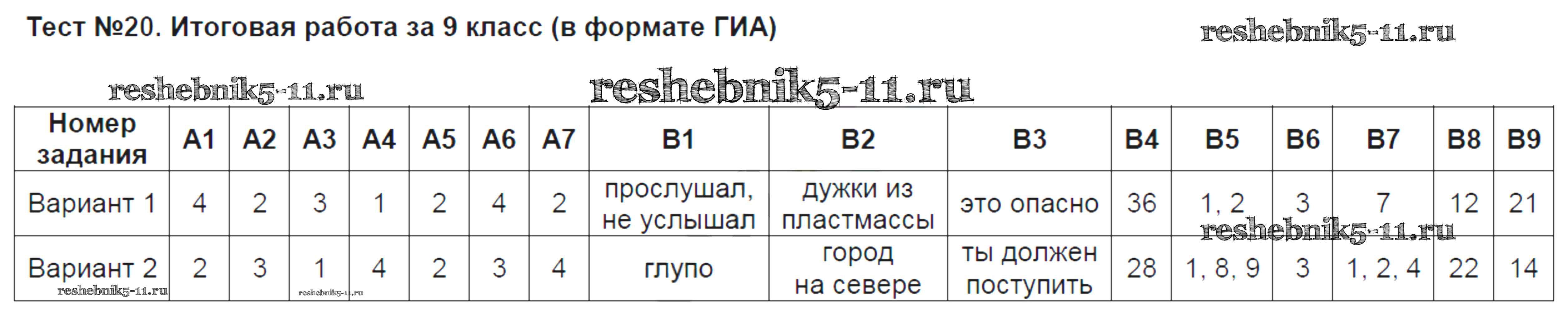 Готовая домашняя работа с ответами по Русскому языку за 9 класс Никулина Контрольно-измерительные материалы (КИМ) Экзамен 2014 ФГОС - Тесты 20